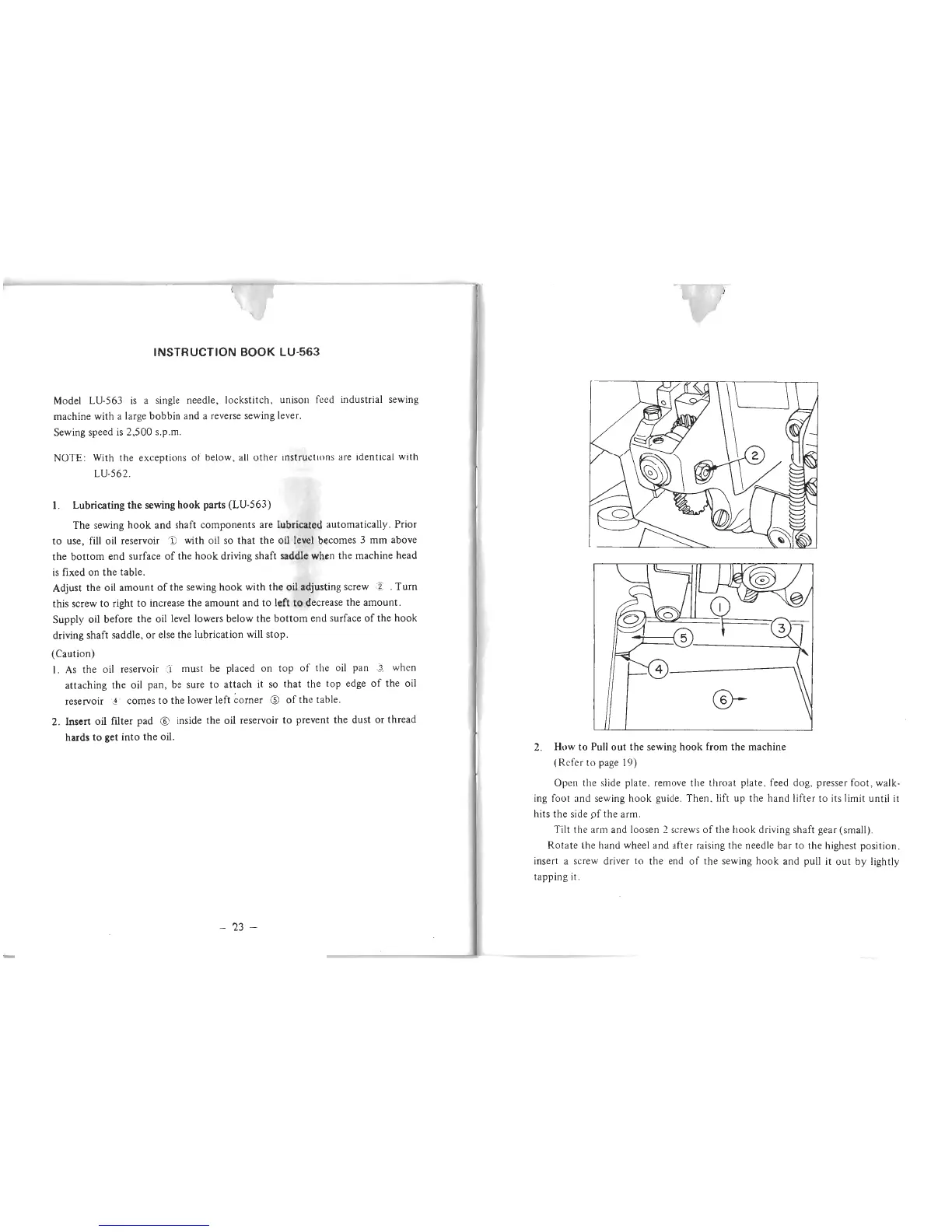 JUKI LU-563 - Instruction Book LU-563 Specifics; Lubricating Sewing Hook Parts (LU-563); Pulling Out Sewing Hook (LU-563)