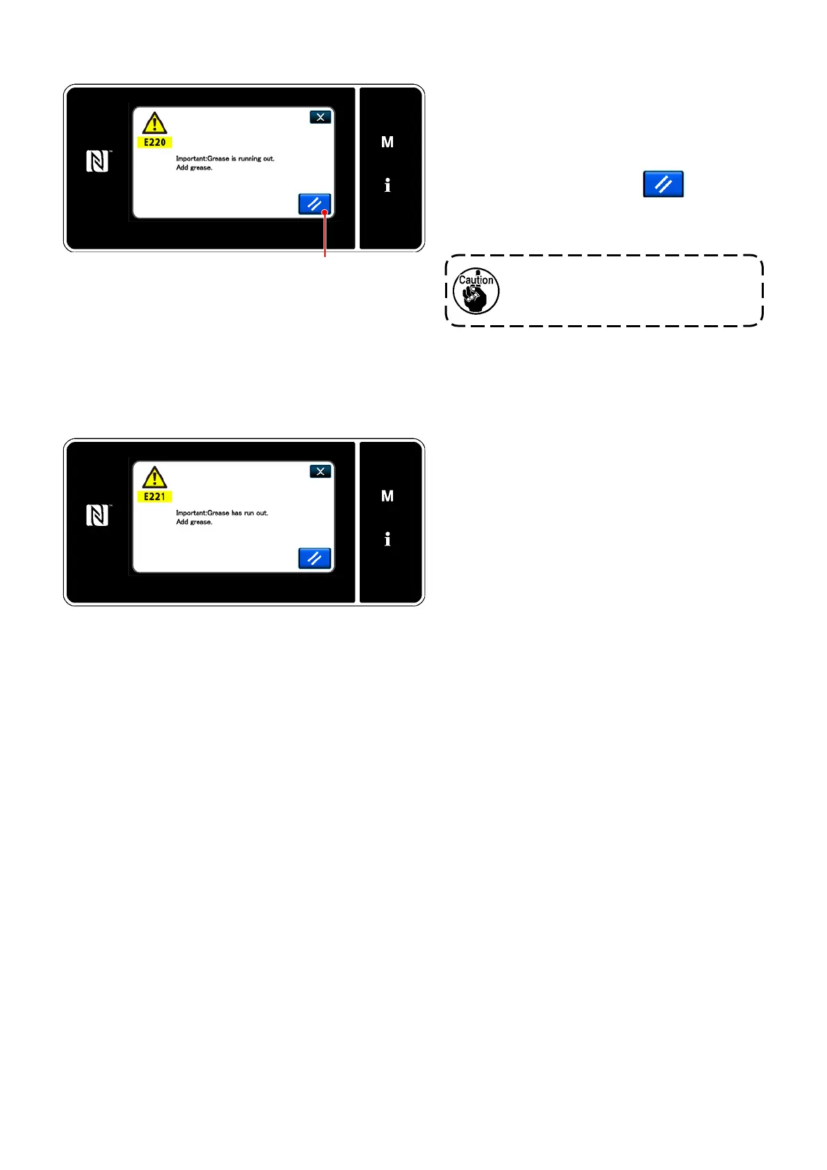 message "E221 Grease-shortage error" will be