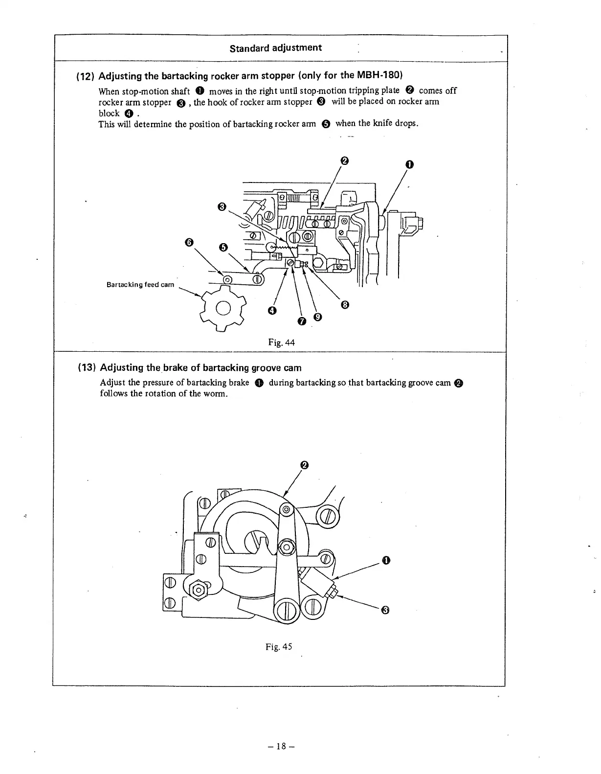 JUKI MBH-180 - Adjusting the Bartacking Rocker Arm Stopper; Adjusting the Brake of Bartacking Groove Cam