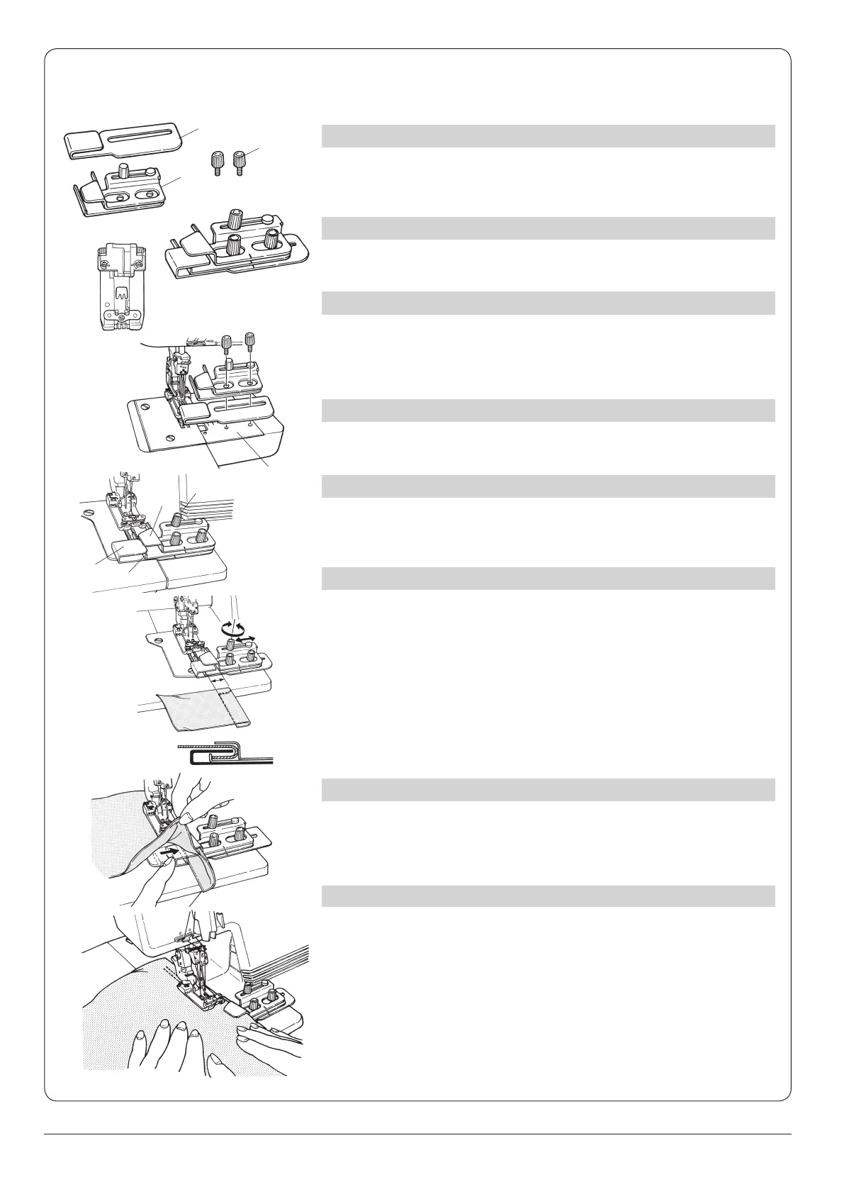 Adjust the Cloth Guide (8) into the Folded Edge Guide, leaving 2 to 4mm