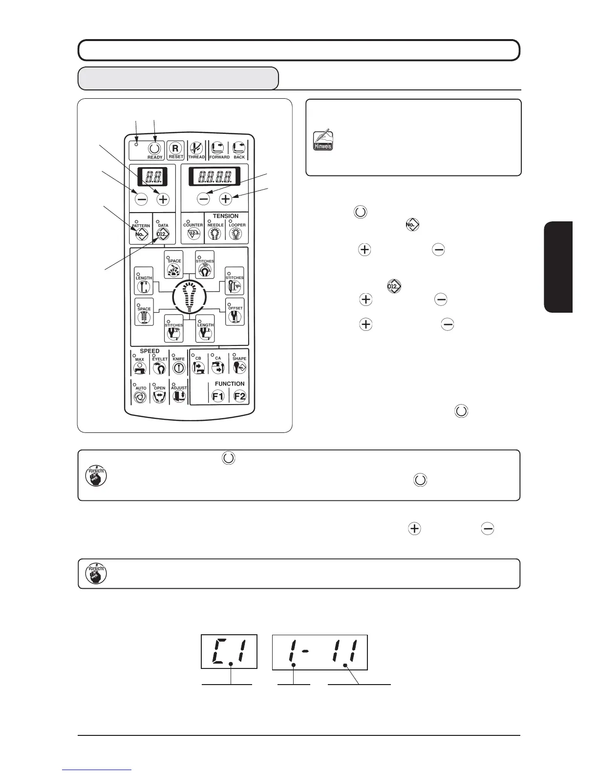 ird die Zyklusnähprogrammnummer geändert, ohne die Taste [READY