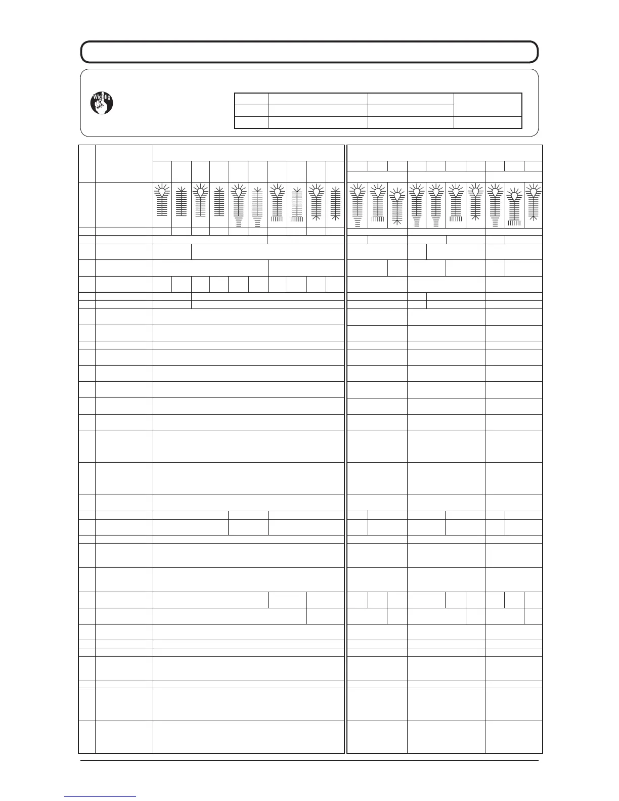 Die Standardmuster, die mit den jeweiligen Stoffdrückertypen verwendet werden können, sind unten angegeben.