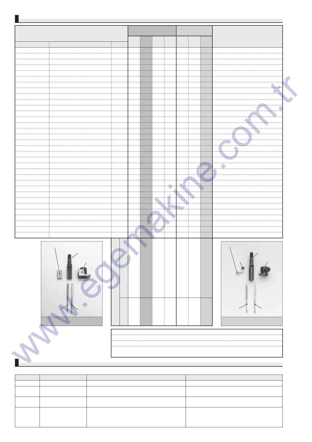 Part No. Thread take-up timing Type Remarks