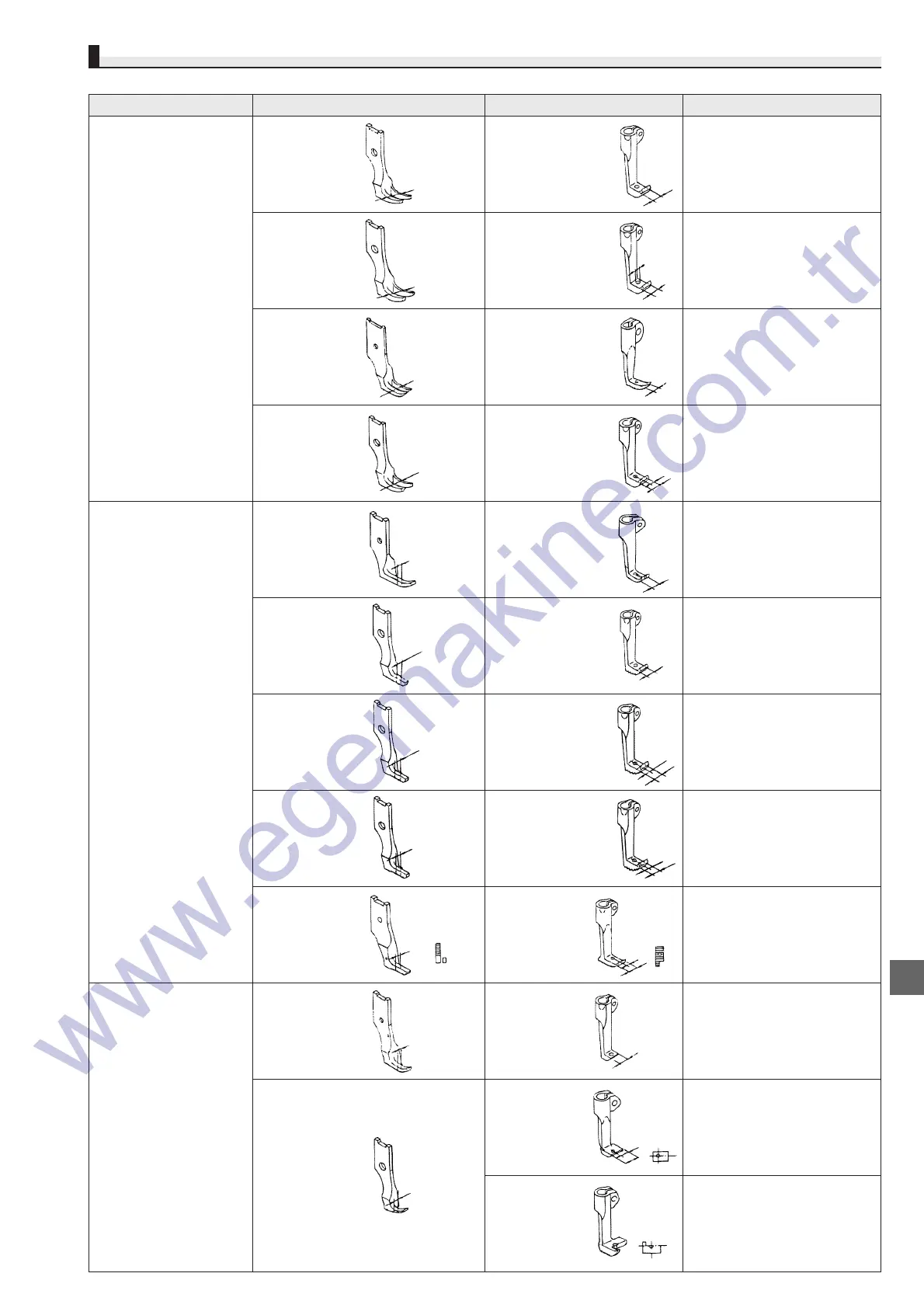 Description Presser foot Walking foot Notes