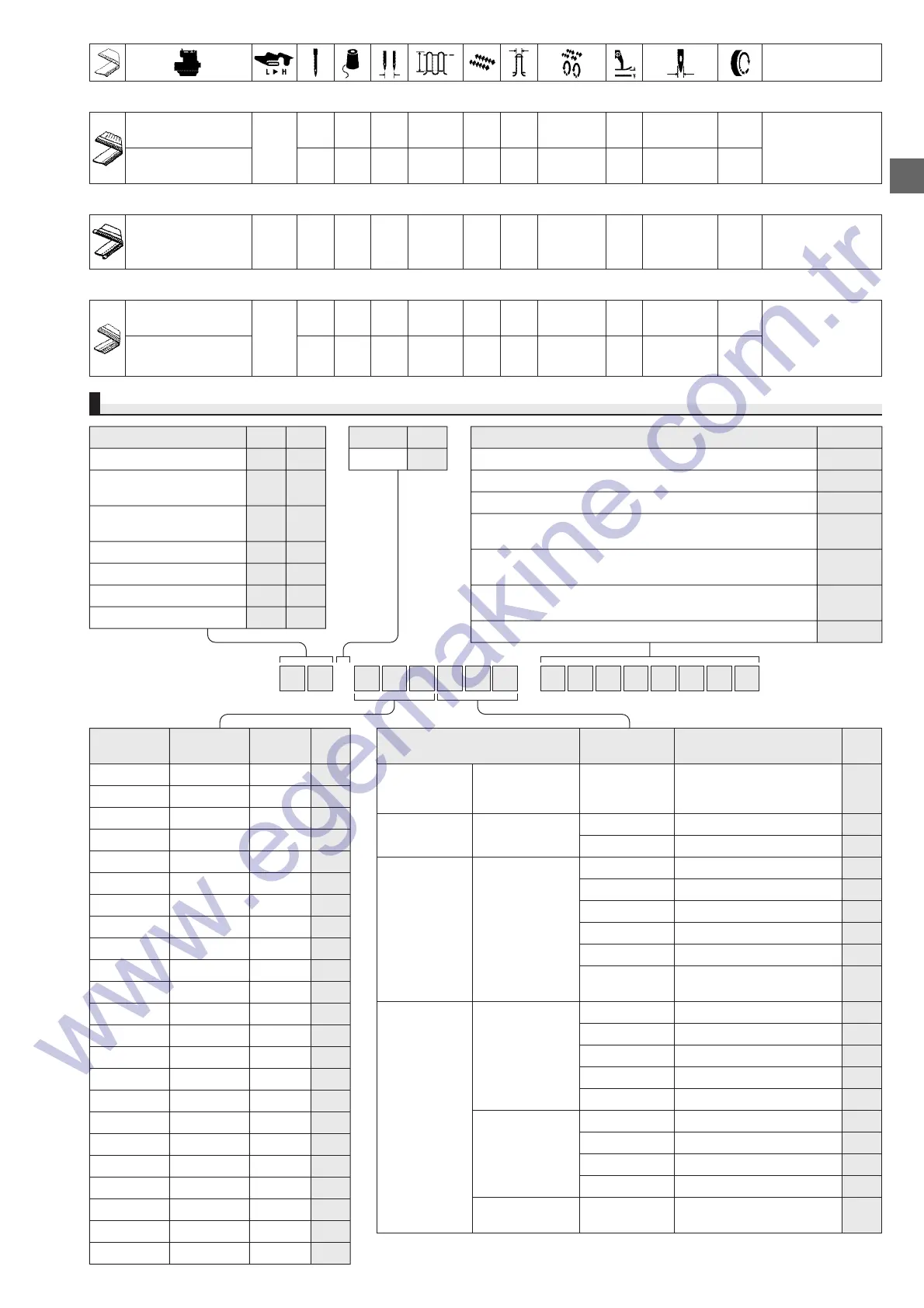 ● For gathering ★S159: Swing-type gathering device (interlocked with pedal) ★S161: Swing-type gathering device (manual-lever operated)