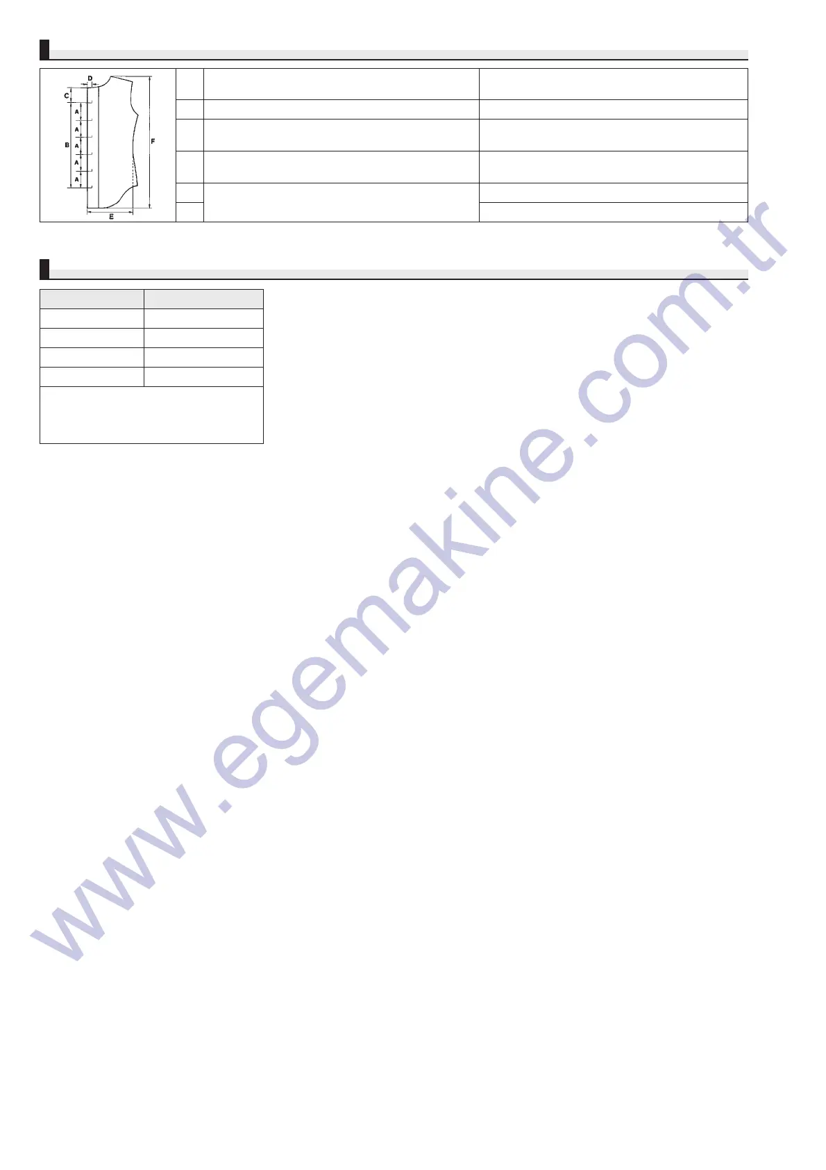 Applicable size of the garment body to be sewn