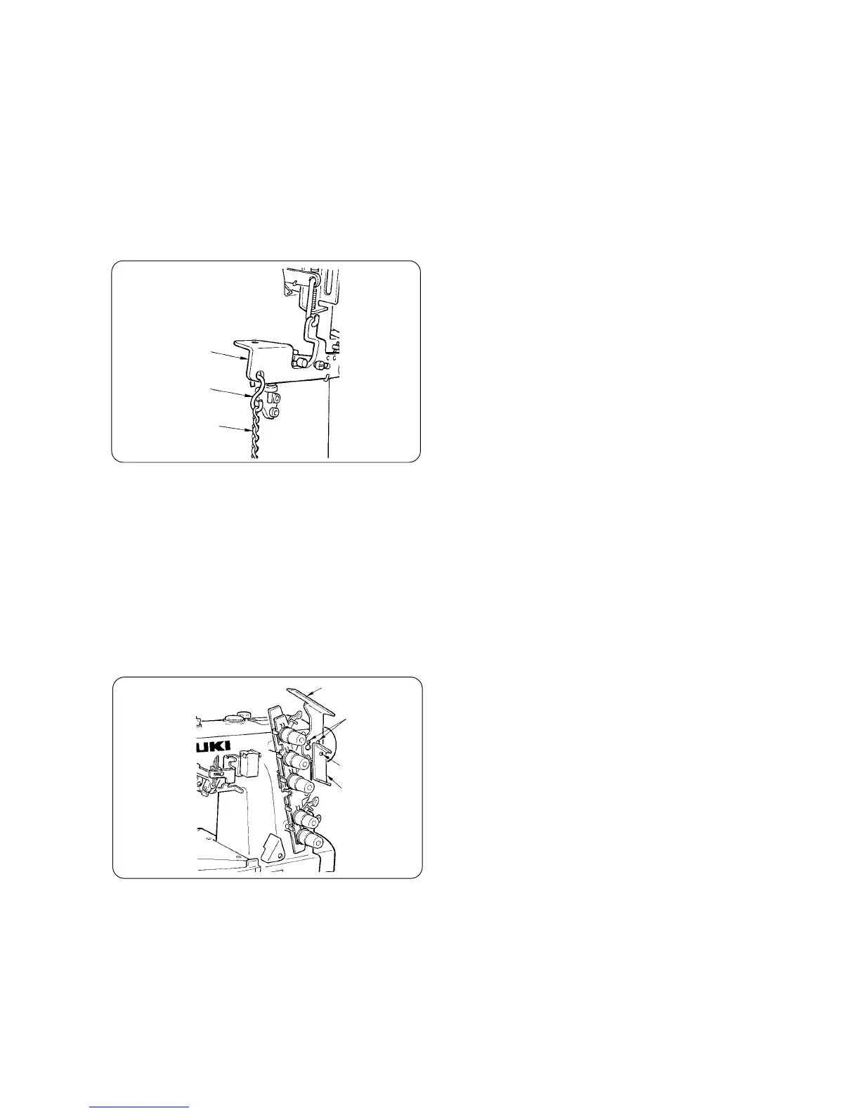 1) Hang hook 2 of chain 1 to presser bar lifting lever 3.