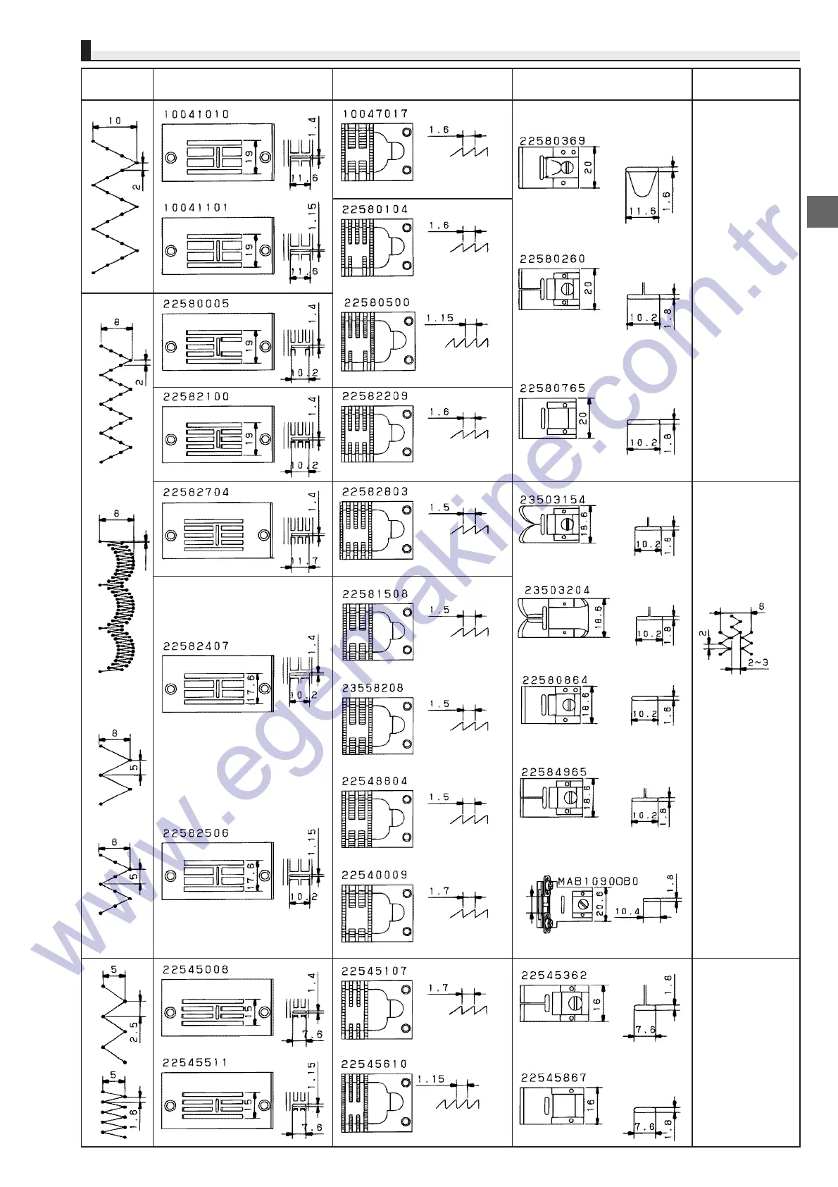 Throat plate Feed dog Presser foot (with finger guard) Remarks