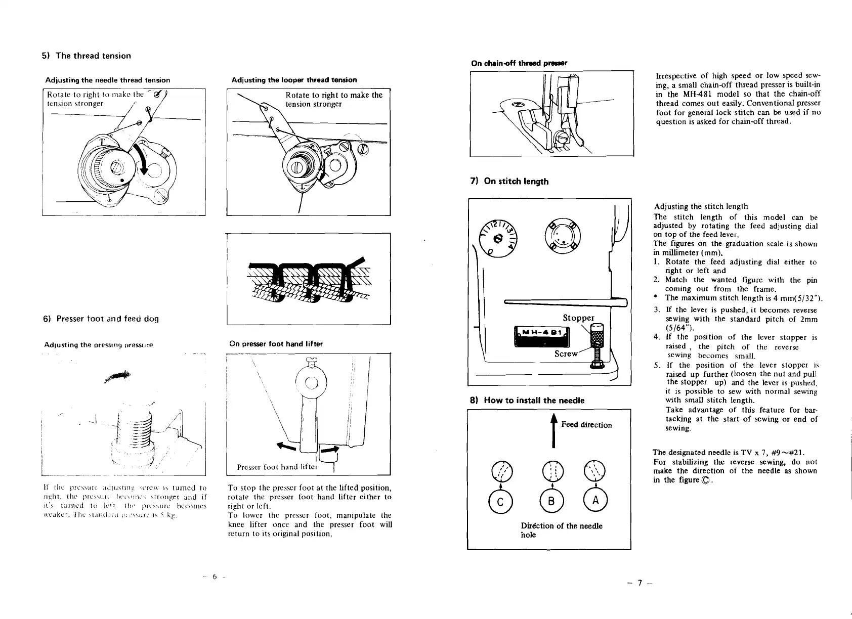 The maximum stitch length is 4 rnm(5/32").