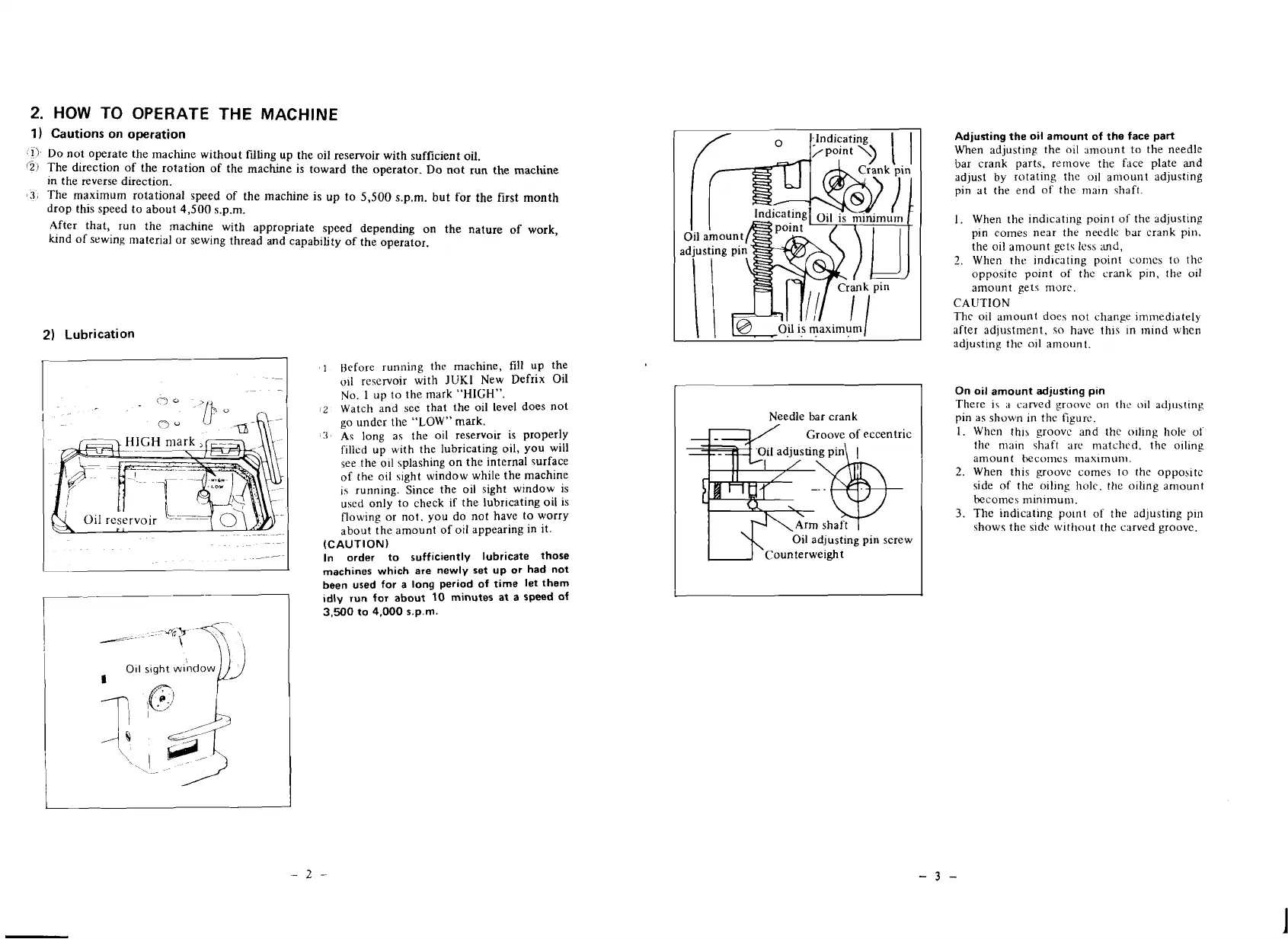 Do not operate the machine without filling up the oil reservoir with sufficient oil.