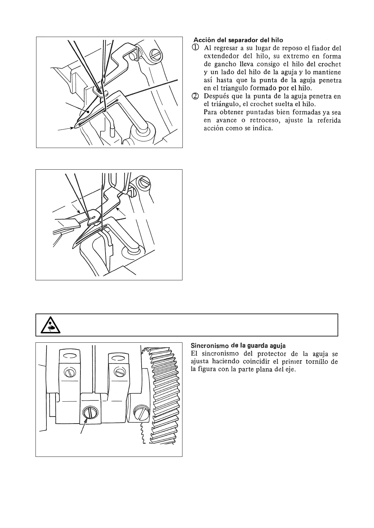 El extendedor sujeta fi rmemente el hilo del enlazador