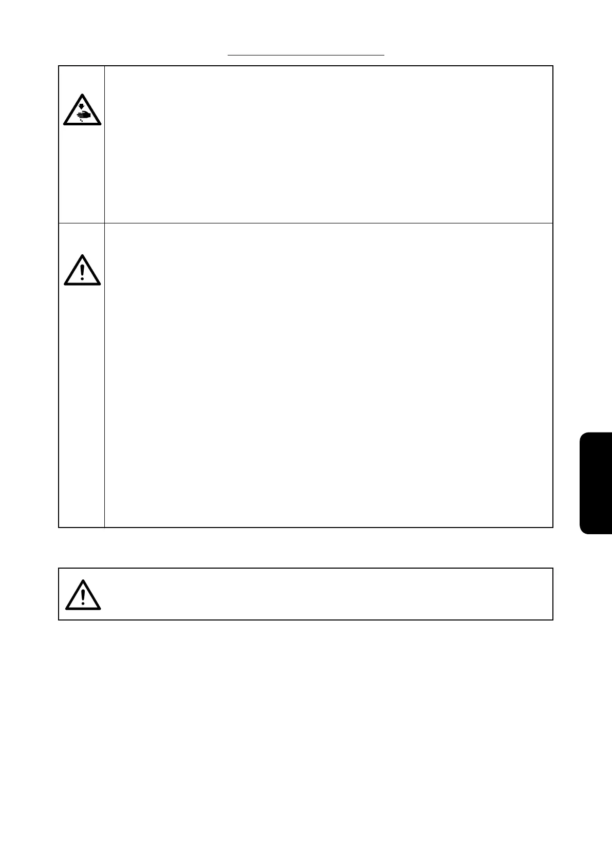Al fi ne di evitare rischi di ferimento alle mani, assicurarsi di tenere le stesse lontano dall'area