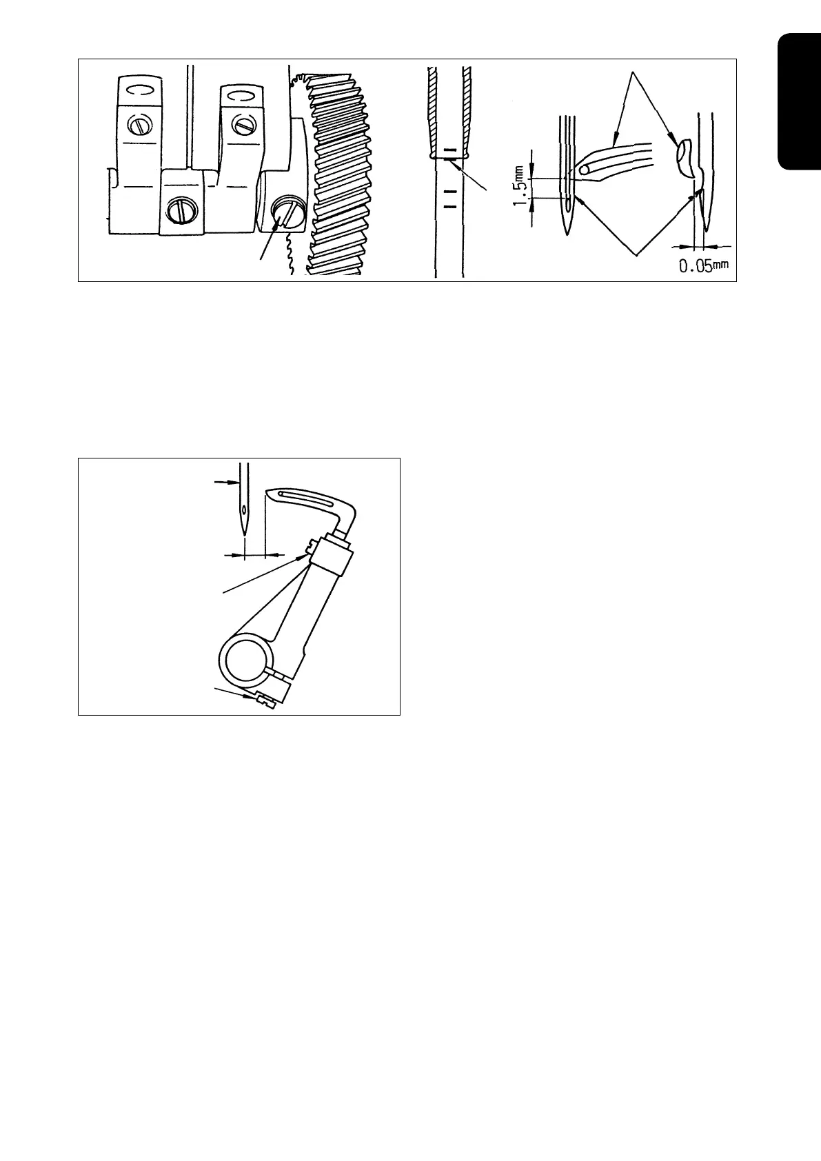 is spaced 1.5 mm from the upper end of needle eyelet and so that a clearance of 0.05 mm is provided between