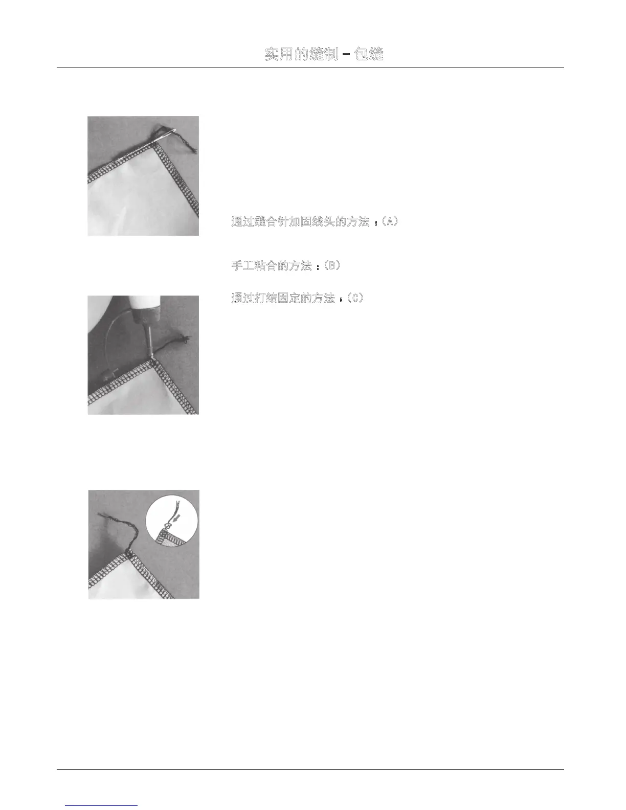 在缝制开始及结束的地方预留 2~3cm 的空环,然后用缝合针将其放入到线迹中