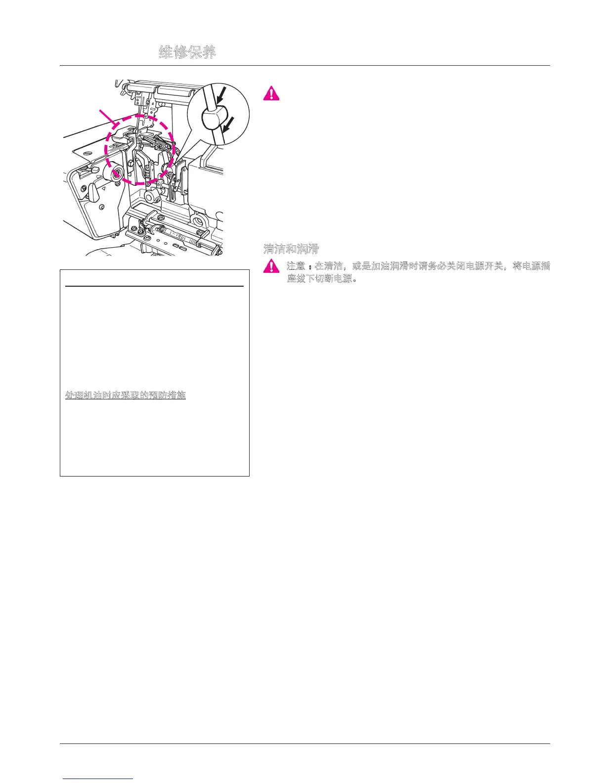 注意 :在清洁,或是加油润滑时请务必关闭电源开关,将电源插
