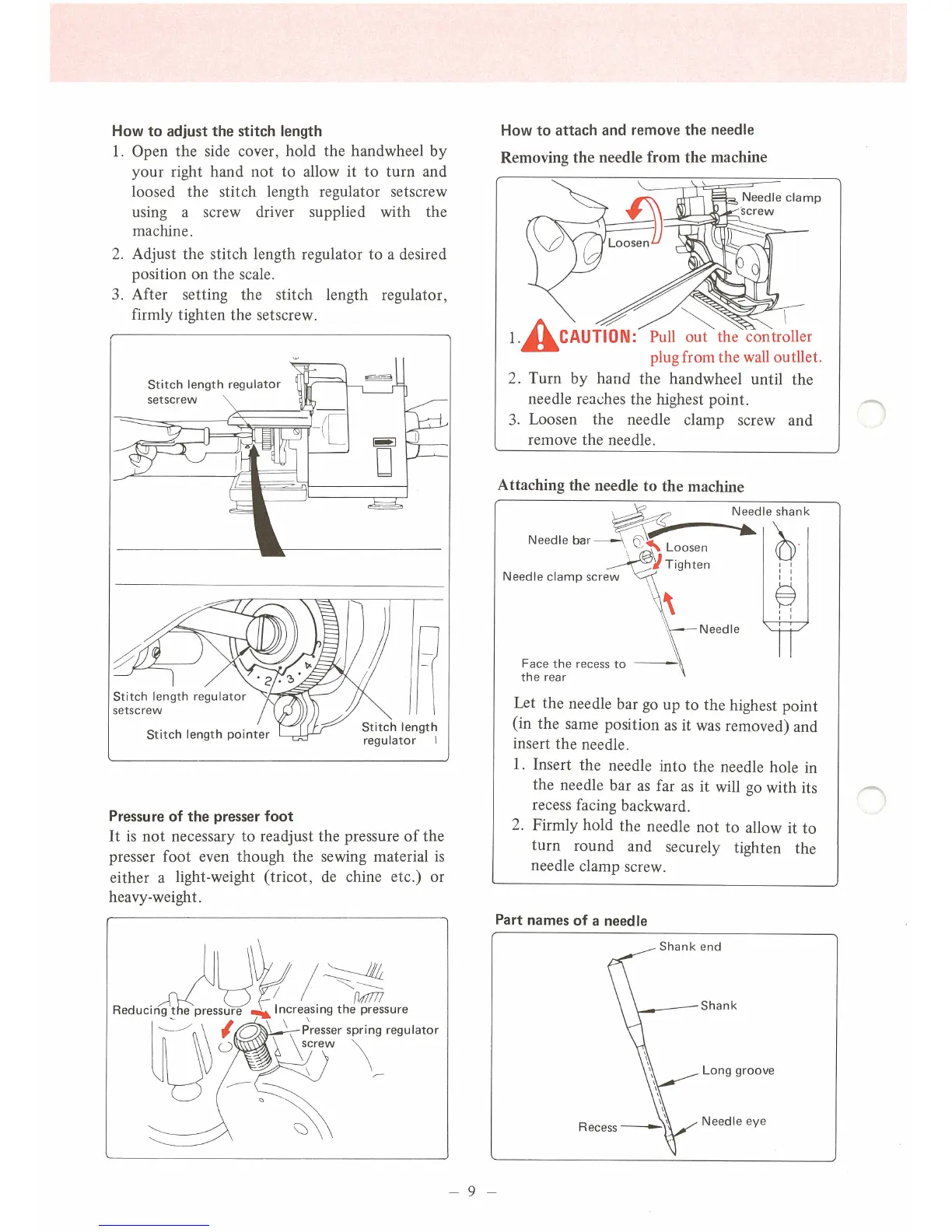 JUKI MO-103N - How to Adjust Stitch Length; How to Attach and Remove the Needle; Removing the Needle; Attaching the Needle