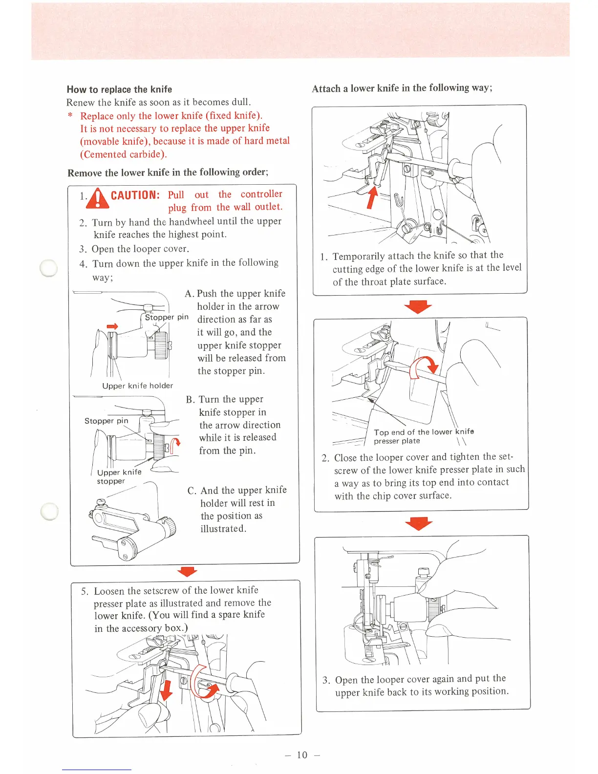 JUKI MO-103N - How to Replace the Knife; Removing the Lower Knife; Attaching a Lower Knife