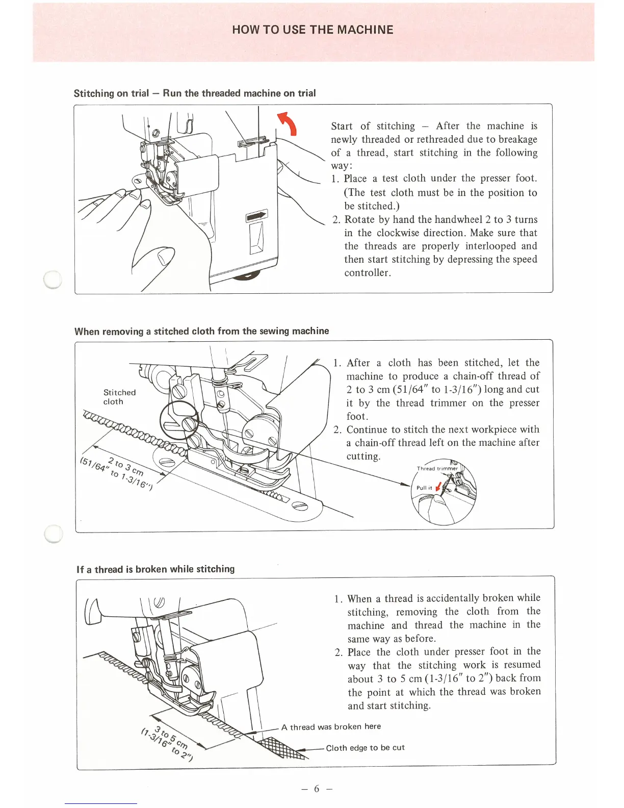 JUKI MO-103N - How to Use the Machine; Stitching on Trial