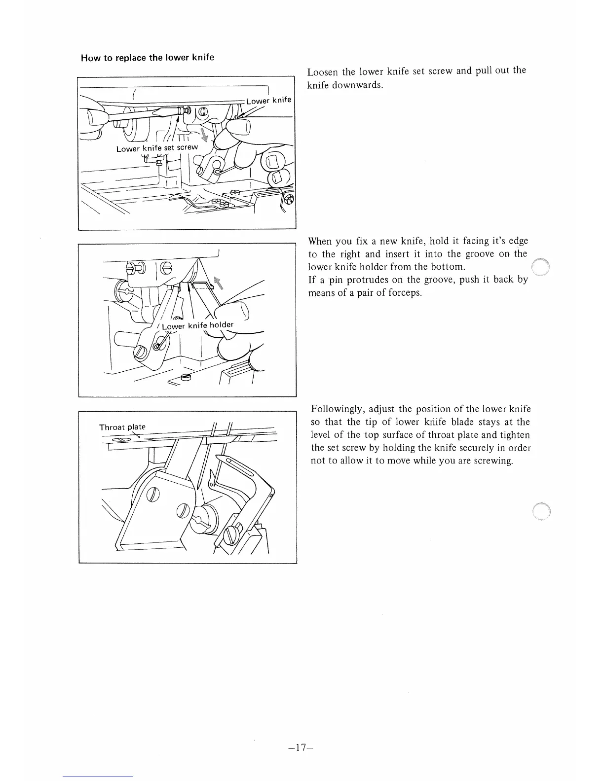 JUKI MO-104 - REPLACING THE LOWER KNIFE