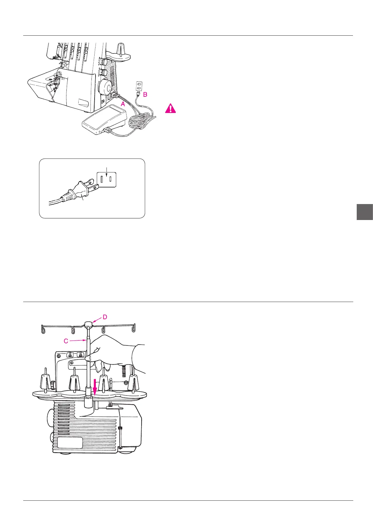 socket (B). The foot control regulates the sewing speed. The sewing