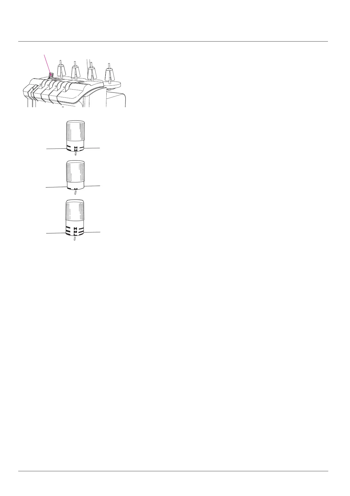 • More pressure: for thick or sti fabrics such as denim, tweed, rm lin-
