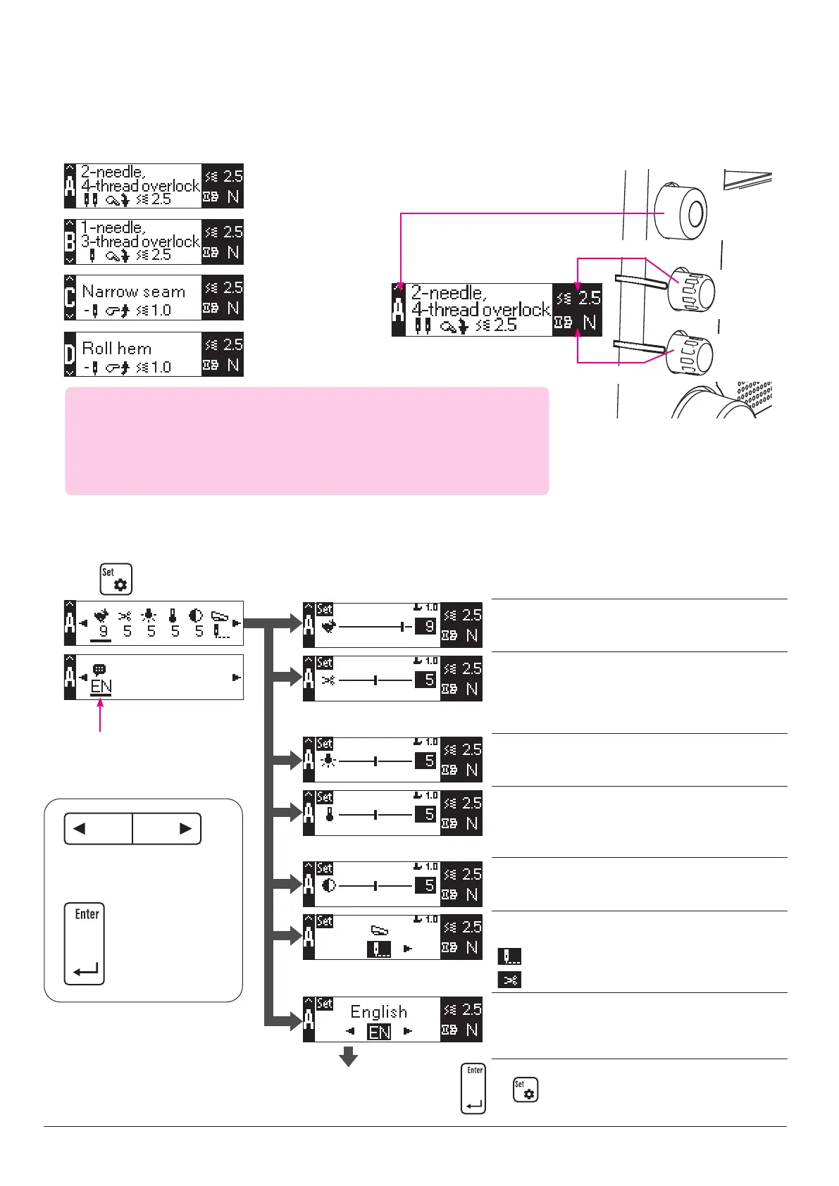 thread according to the stitch, material thickness, stitch length and knife width