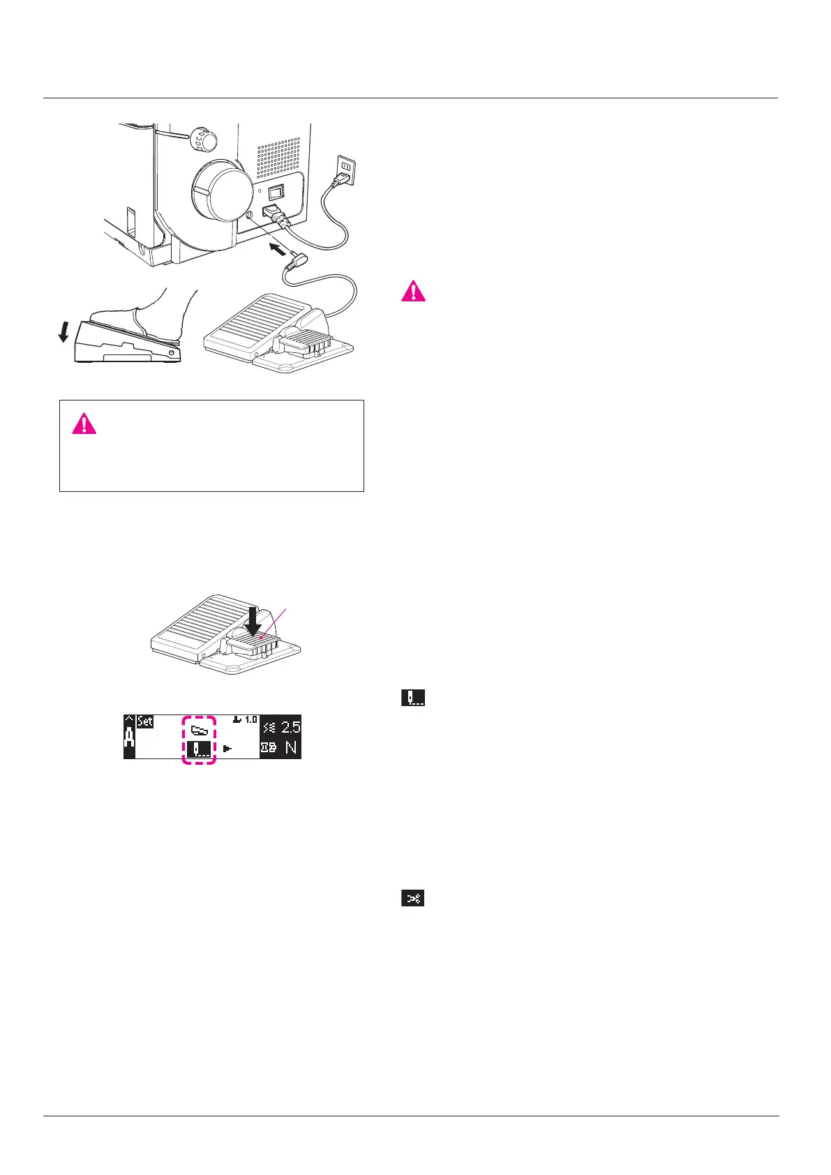 The foot control regulates the sewing speed. The sewing