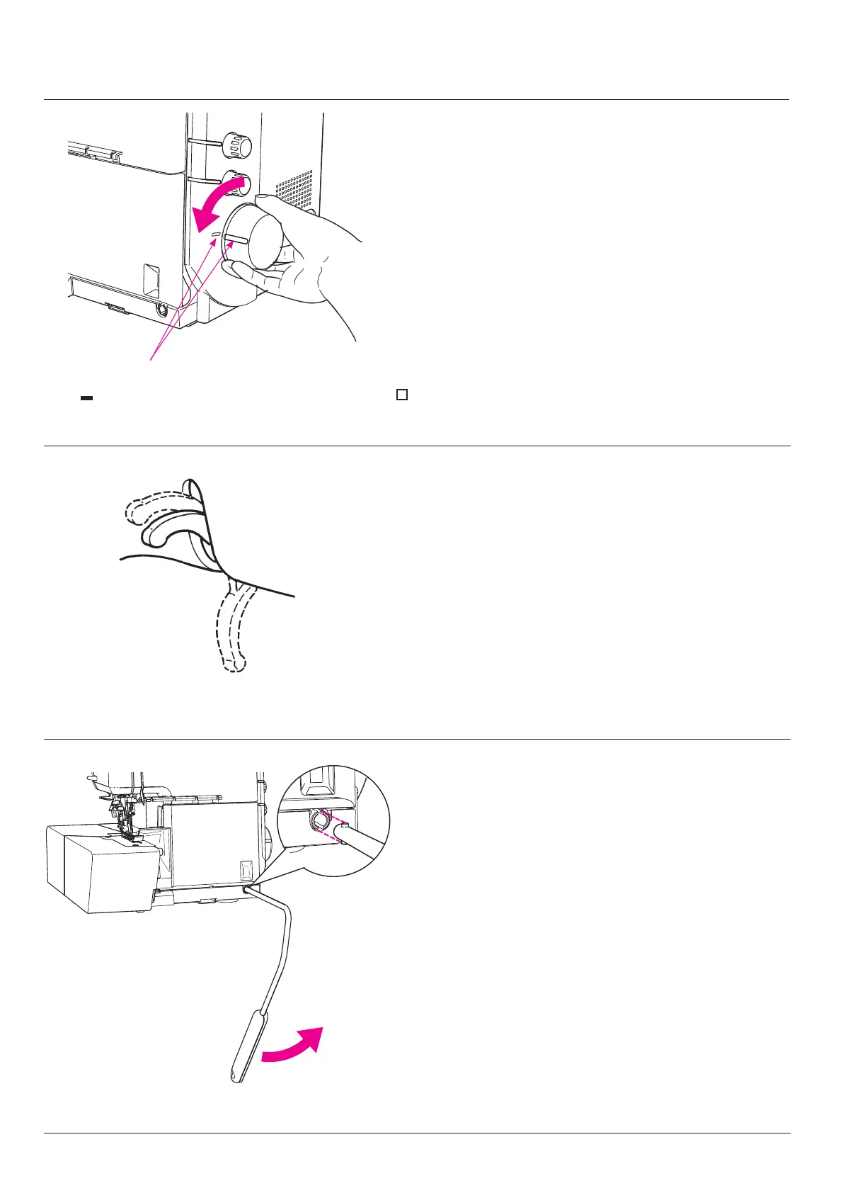 * Do not touch the knee lifting lever during sewing. If you
