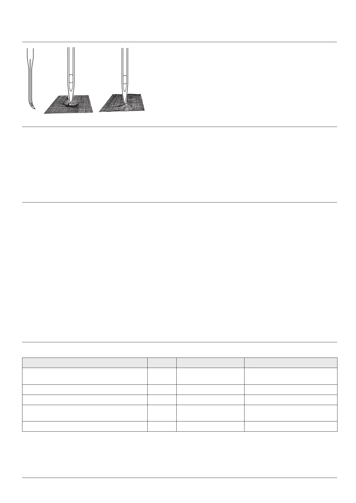 When sewing, the thread is fed through the long groove in the needle. If the needle is too ne, the thread does not t