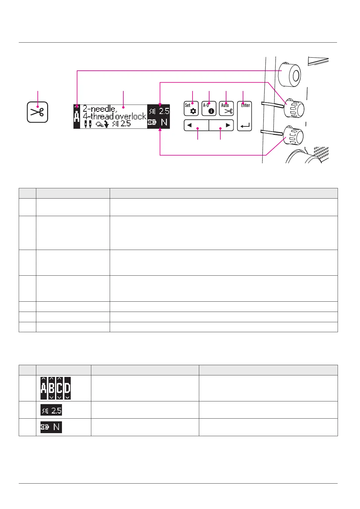 Four dierent types of stitches are available: "A: 2-needle 4-thread", "B: 1-needle