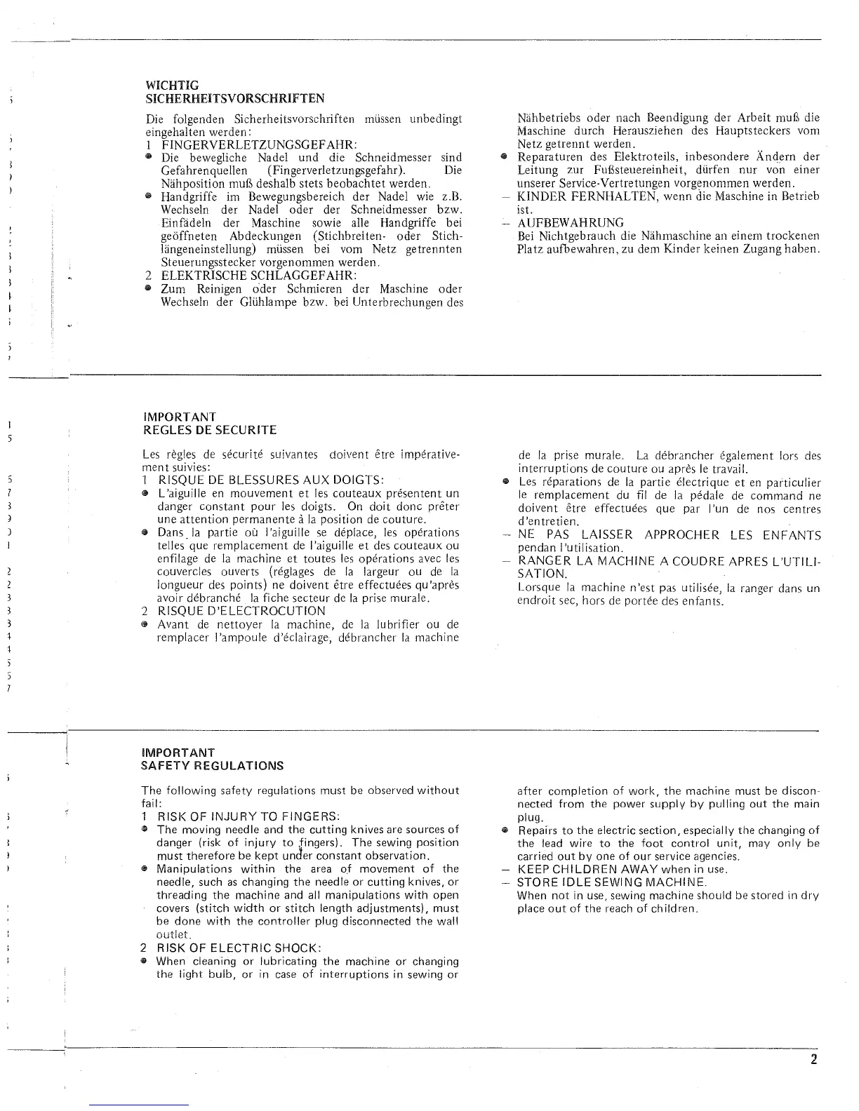 JUKI MO-634 - Finger Injury Prevention; Electric Shock Prevention