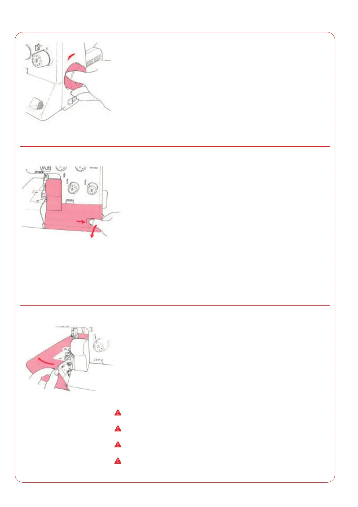 Fermeture: Pousser le plateau de tissu vers la machine en appuyant.