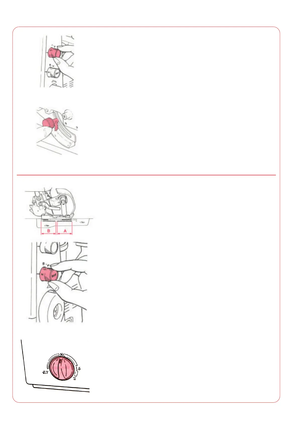 To adjust the stitch length, turn the stitch length adjusting knob and move t he knob