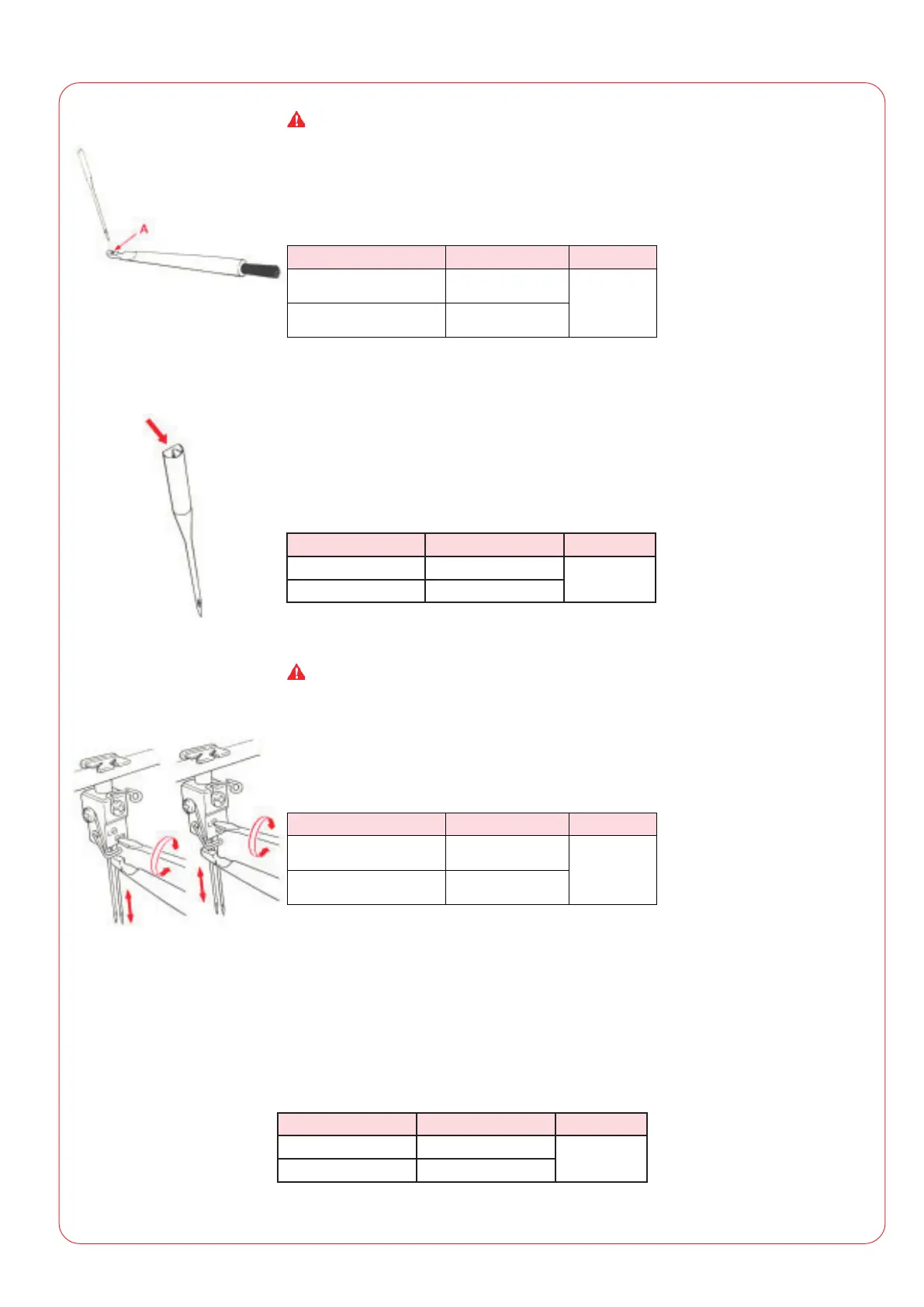 • Doe nu het zelfde met de linker naald en controleer vervolgens de naaldschroeven.