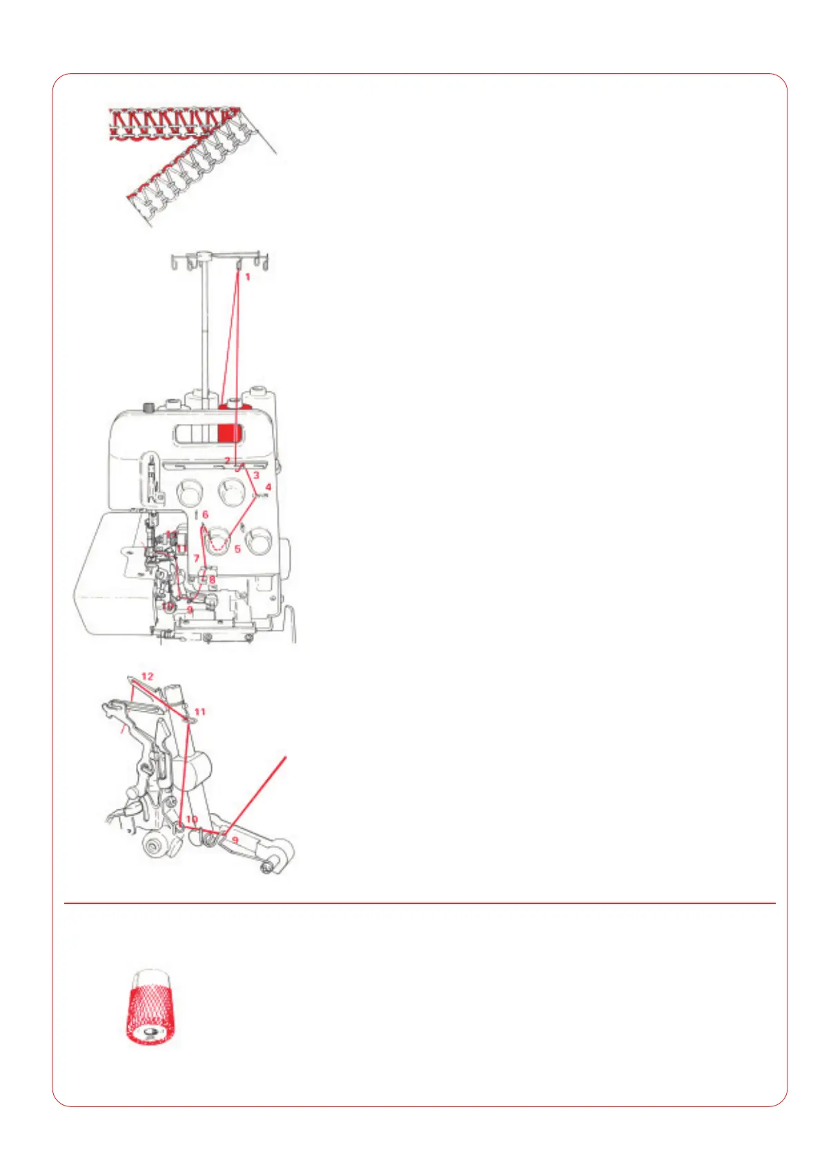 (6,7,8,9,10,11) Guider le fil sur les différents points d’enfilage du guide-fil.