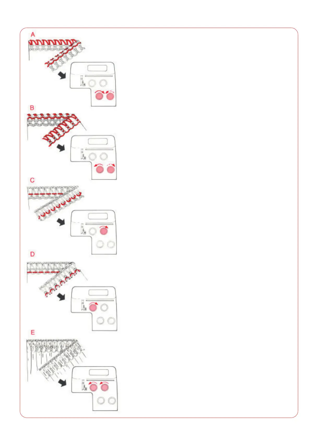 D - If the left-hand needle thread forms loops on the underside of the fabric: