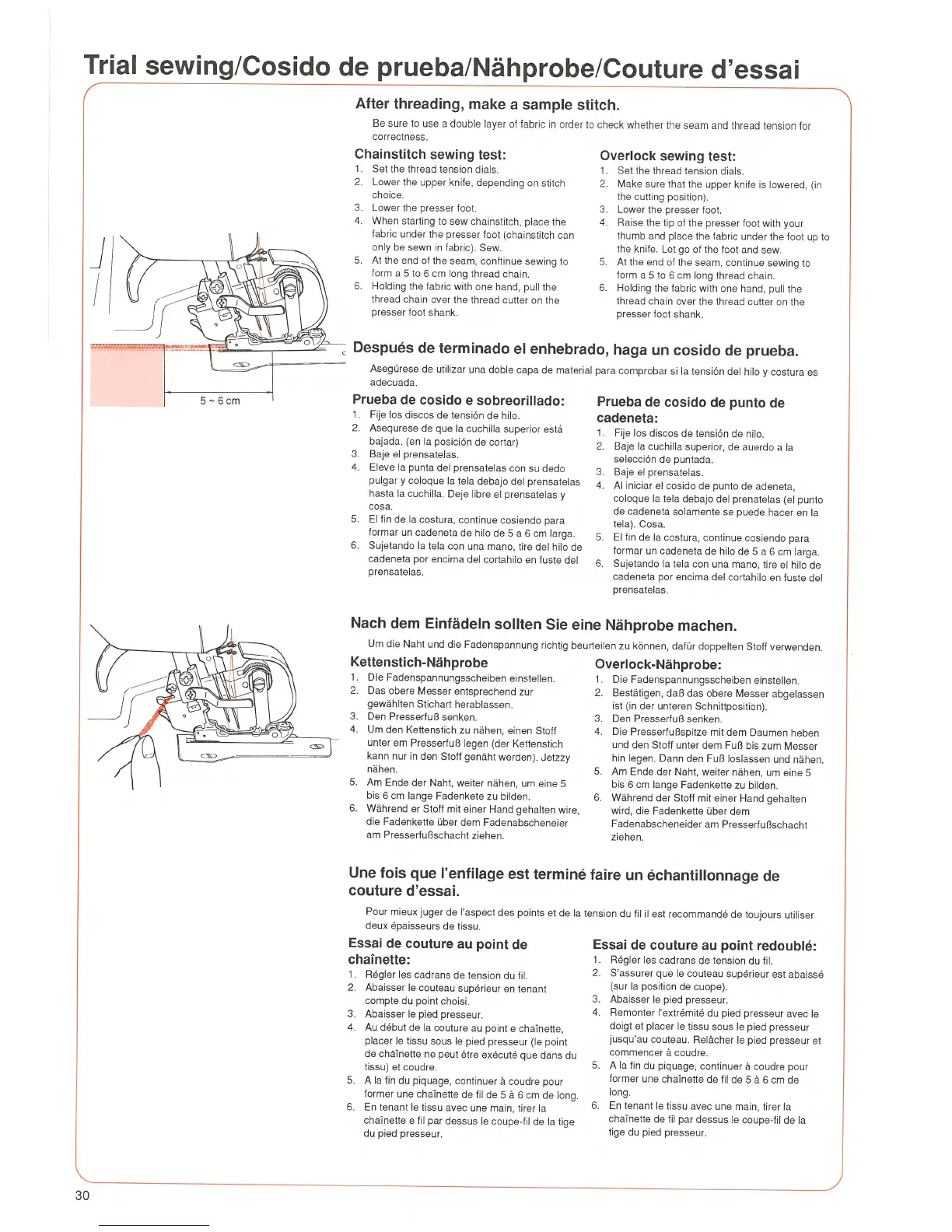 JUKI MO-655 - Trial Sewing Procedures; Chainstitch Sewing Test; Overlock Sewing Test