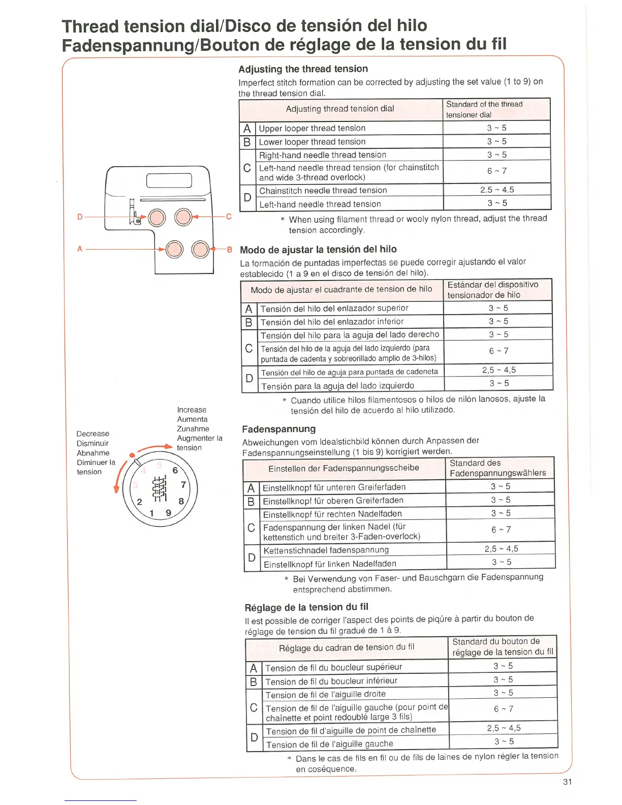 JUKI MO-655 - Thread Tension Adjustment; Adjusting Thread Tension Dials