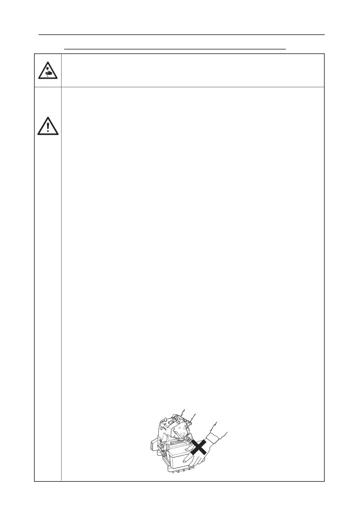 1. Per evitare possibili ferimenti, non azionare mai la macchina sprovvista di