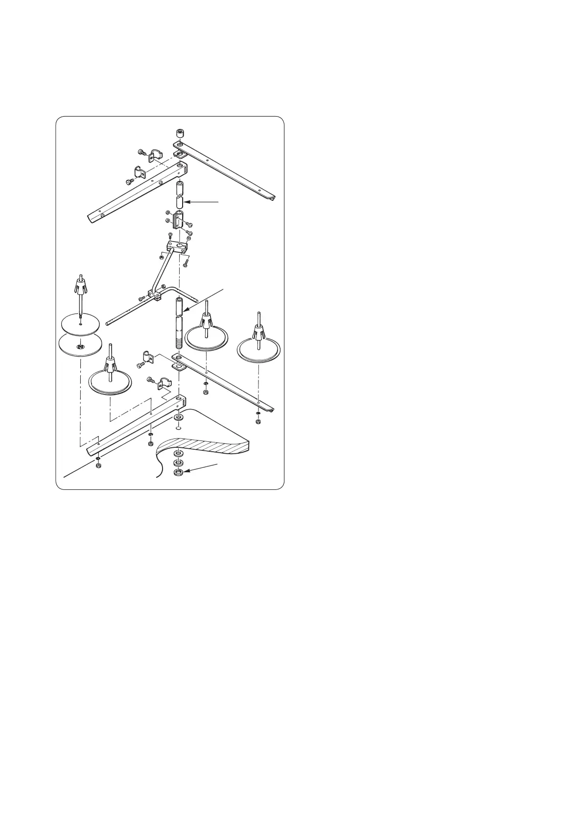 1) 糸立装置を図のように組み付け、テーブルの穴に