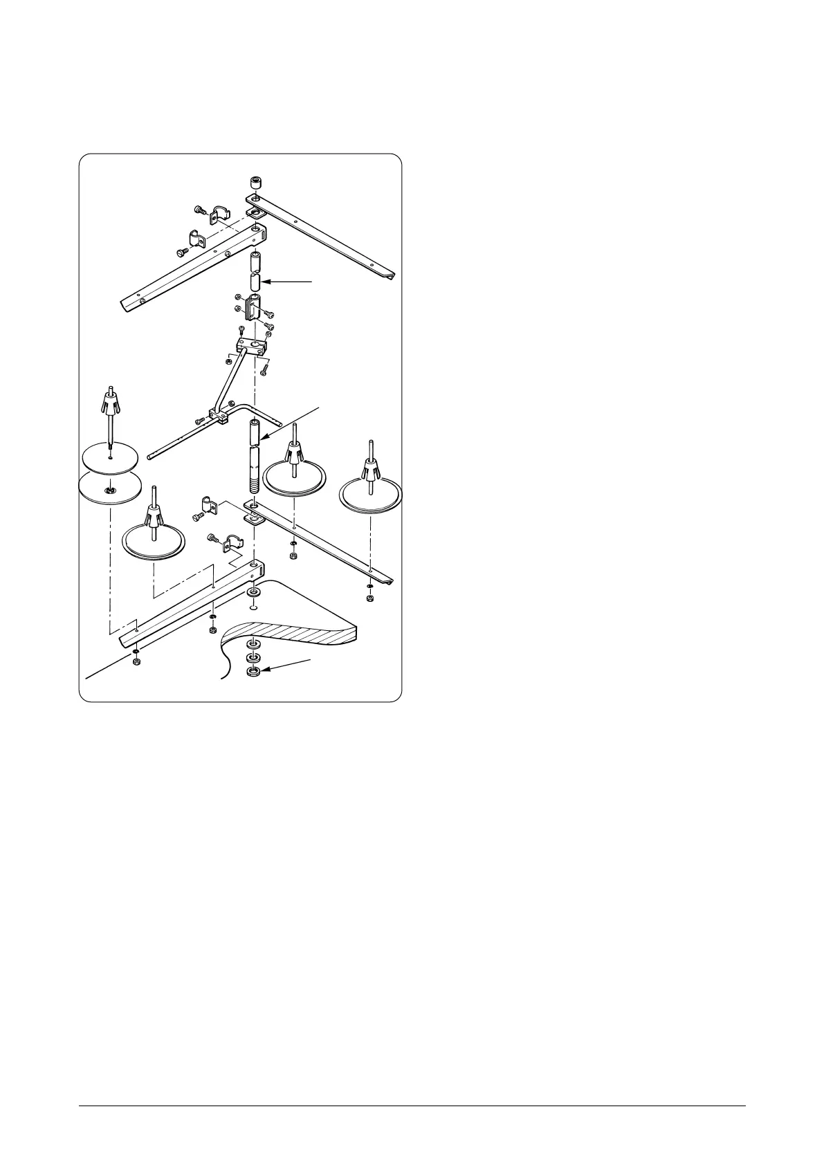 1) 糸立装置を図のように組み付け、テーブルの穴に取