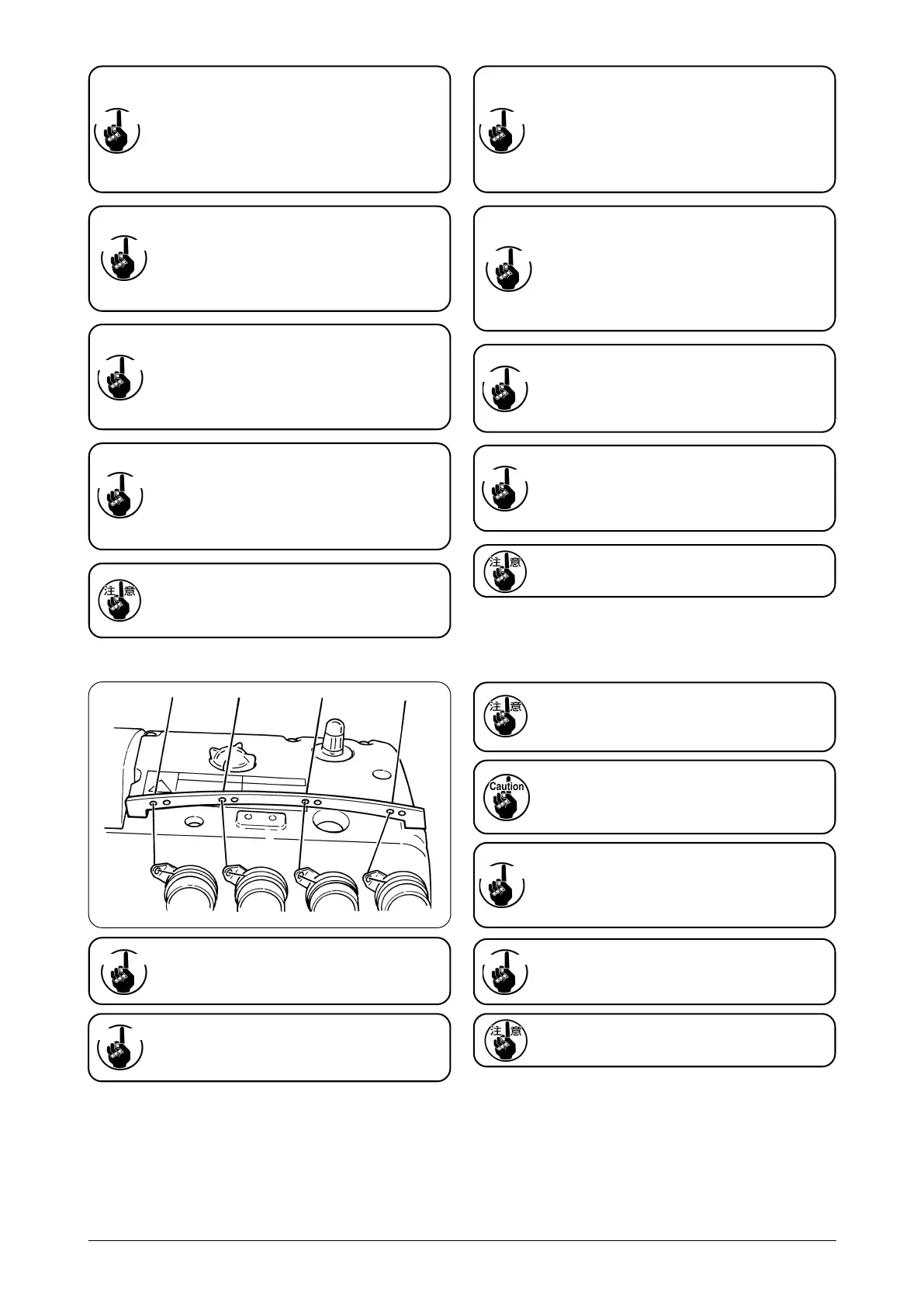 ミシンの不意の起動による人身の損傷を防ぐため、電源を切り、モータの回転が止まったことを確認してから行なってください。