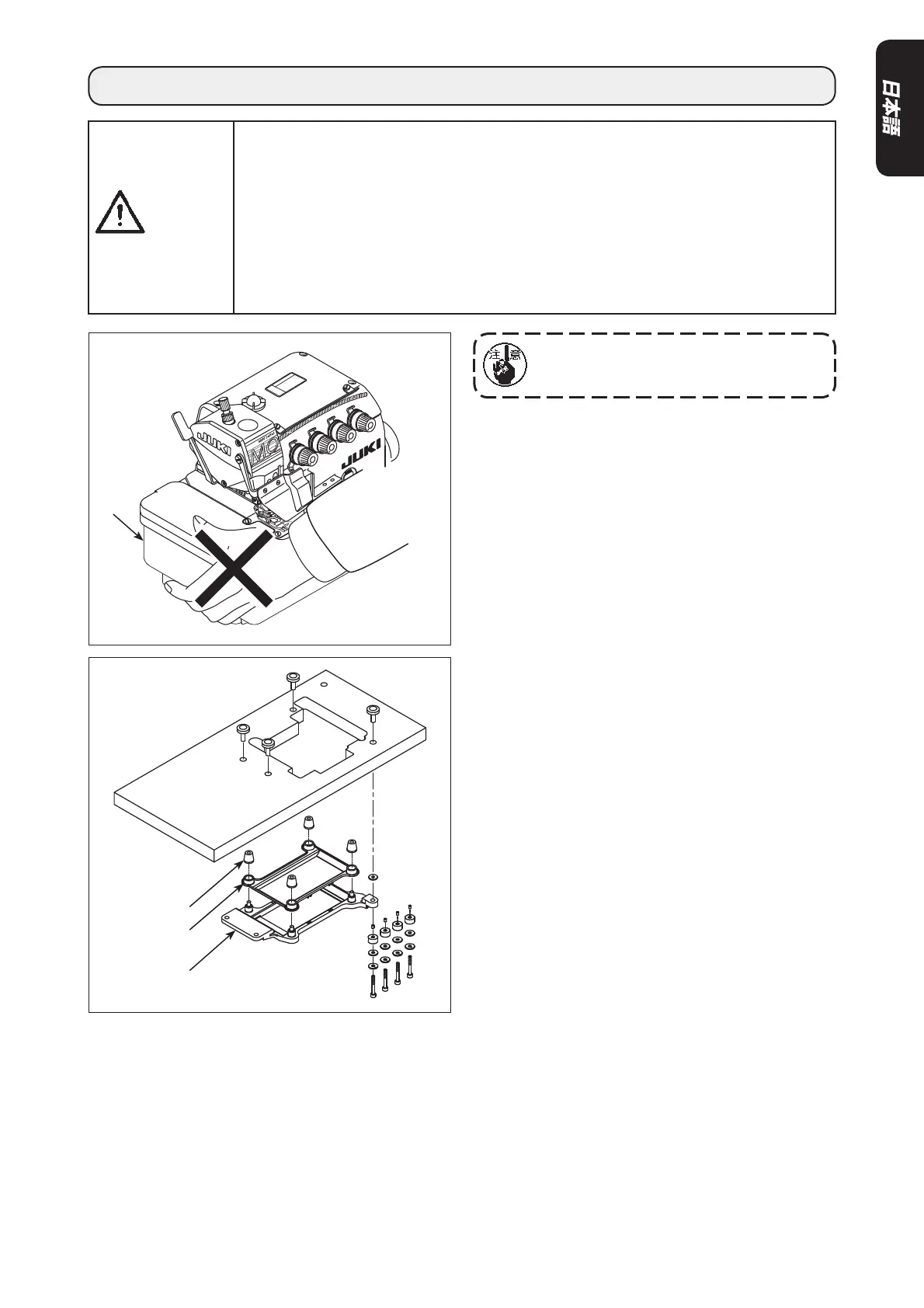 ・ ミシンの設置は、資格を持つ技術者だけが行ってください。