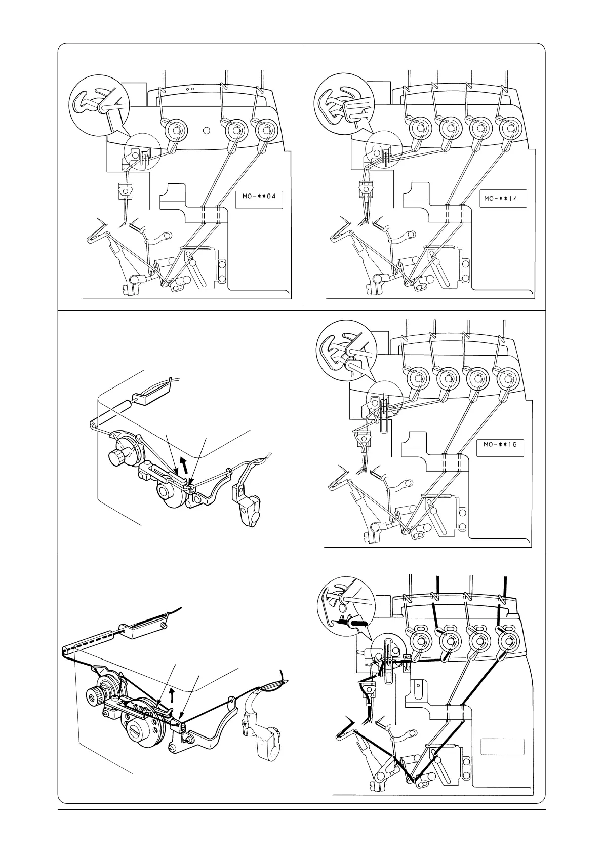 2) 押え2を横に開くときは、針を上位置にし、押え上
