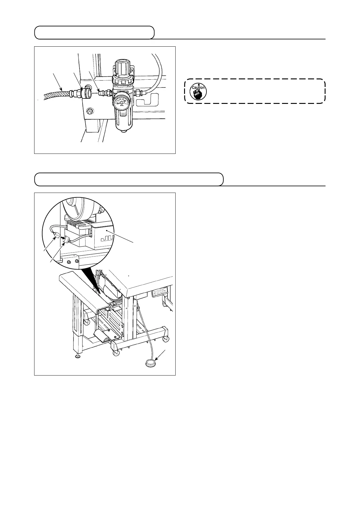 JUKI MO-6904S - Connecting the air coupler; Connecting the starting pedal for the machine