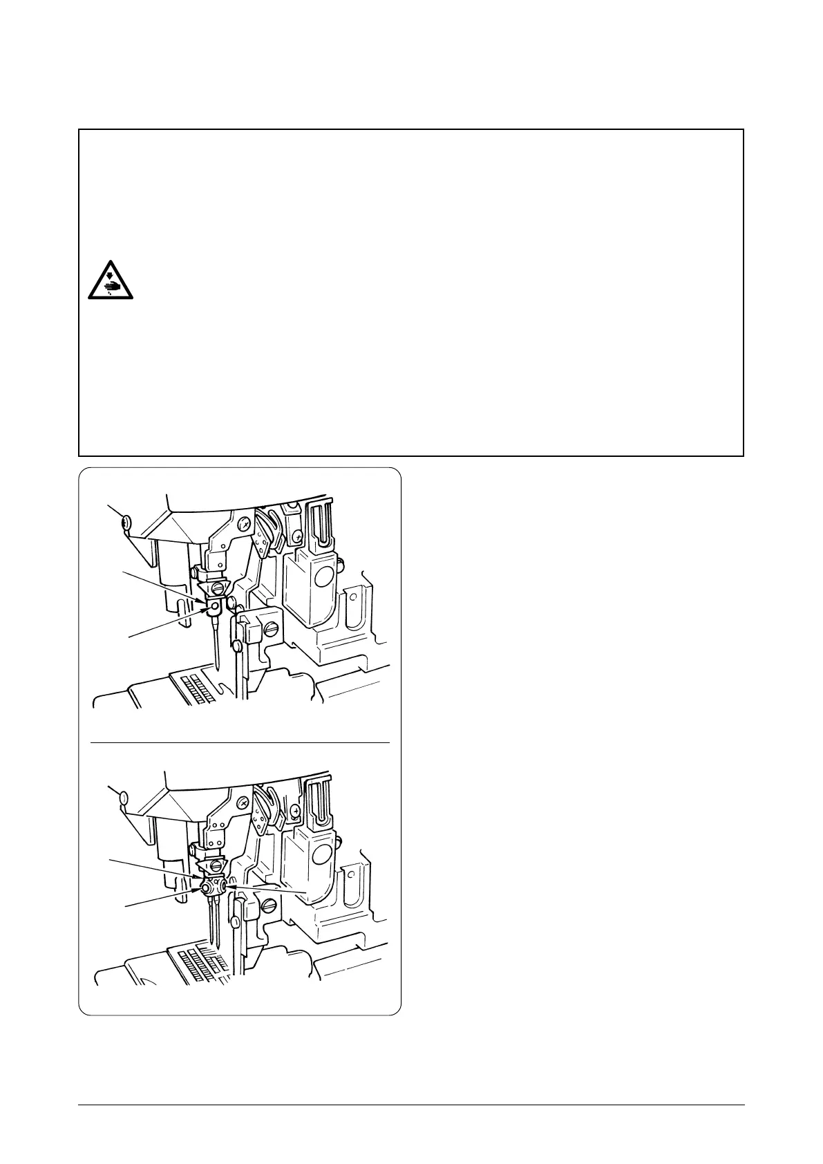 ミシンの不意の起動による人身の損傷を防ぐため、電源を切り、モータの回転が止まったことを確認してから行なってください。