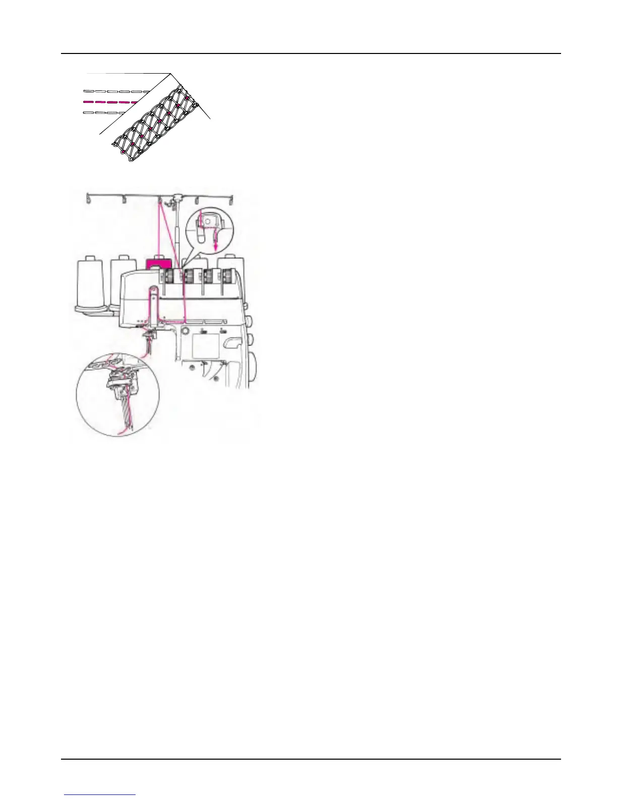 3. Enhebrado de la aguja C para punto de cobertura (marcas rosa)