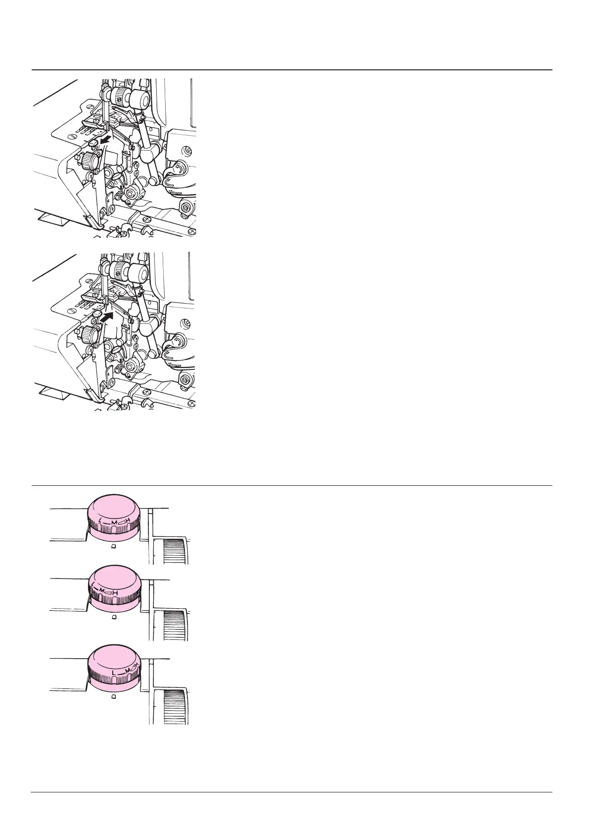 More pressure: for thick or stiff fabrics such as denim, tweed, firm linen (H) =