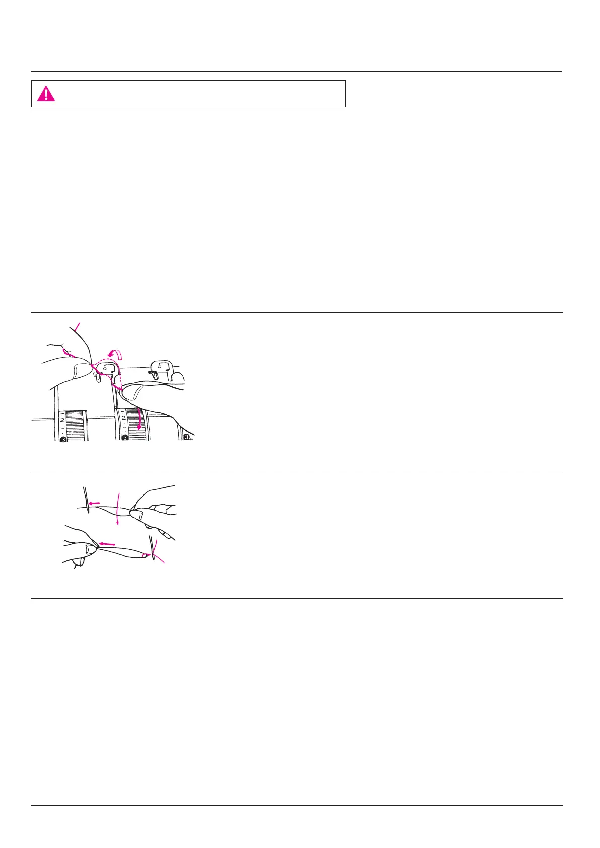 the needles. Raise the presser foot, pull the threads through and rethread the needles. Pull the looper threads through