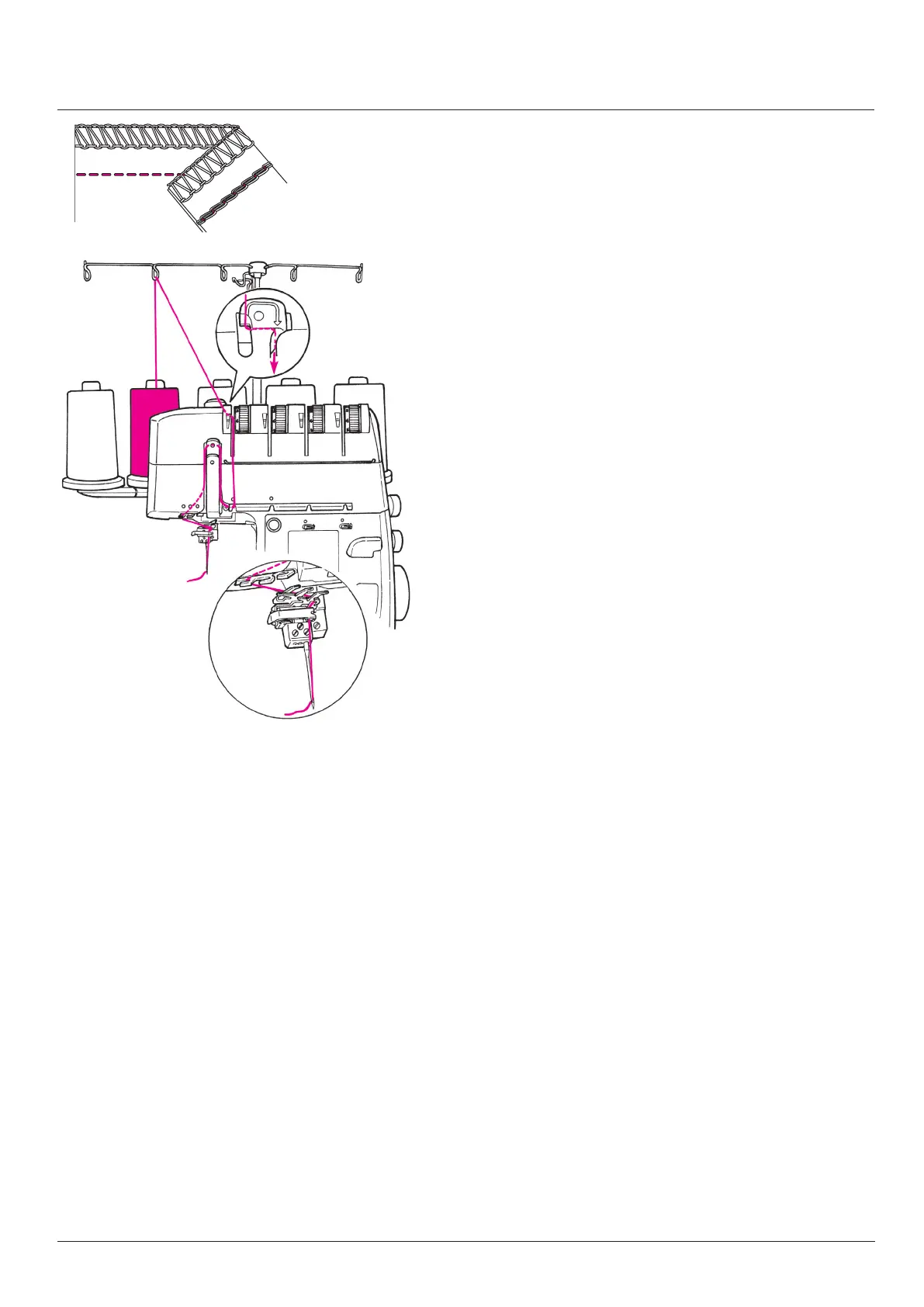 If the looper has to be re-threaded, cut the needle thread off at